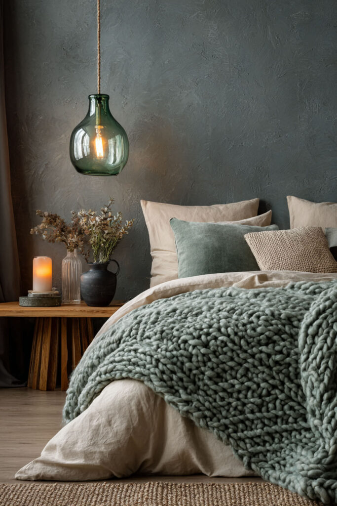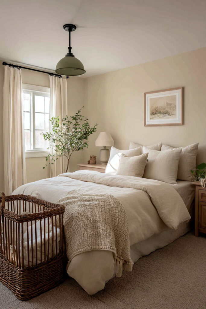 Pendant lights beside the bed aren’t just stylish – they’re practical for new parents. They free up nightstand space for water bottles, burp cloths, and that emergency pacifier stash. Choose pendants with opaque shades that direct light downward and always, always add dimmer switches. Think about installing pendants with inline dimmers so each side of the bed has independent control.