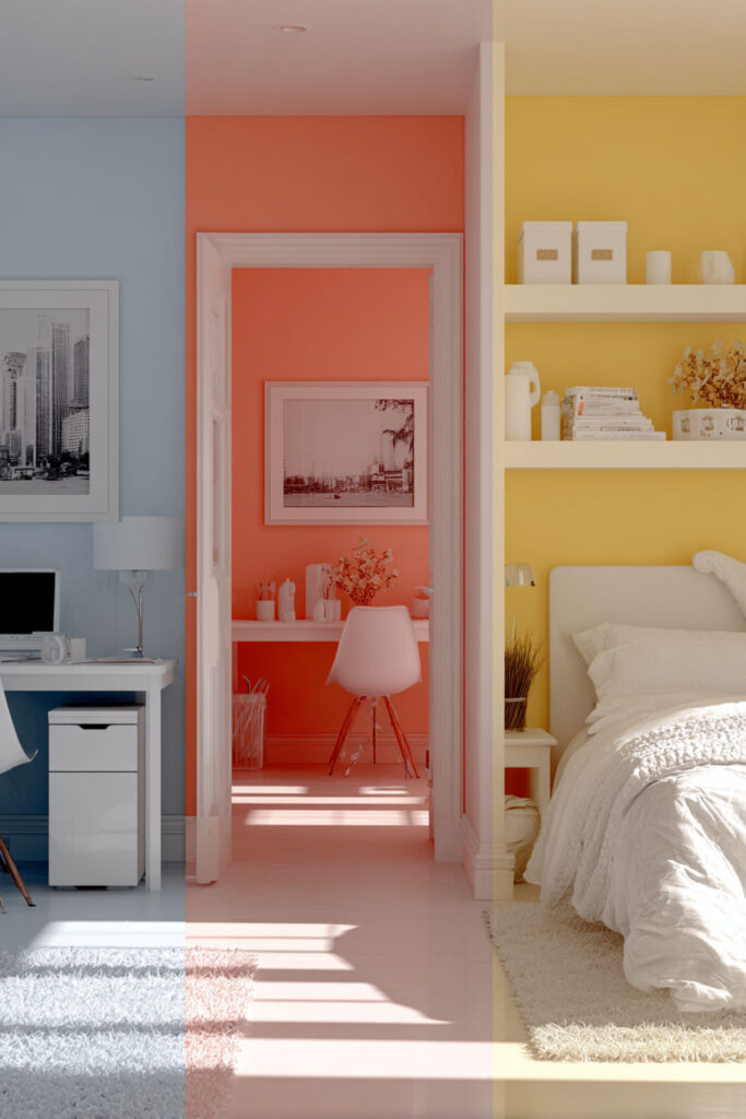 Use color and lighting to reinforce different zones without building walls. Paint the study area in energizing but calm sage green, while the sleep area features soothing lavender. Install task lighting at the desk and warm ambient lighting near the bed. These visual cues help brains switch between work and rest modes. The color psychology really works for defining spaces. This zoning technique works especially well in shared bedrooms.