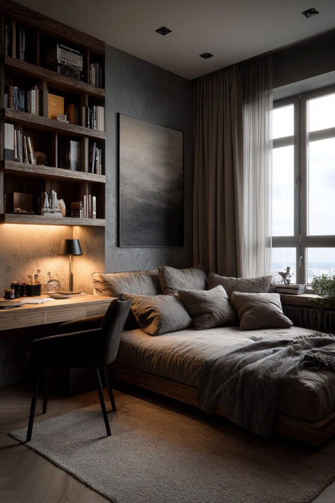 The secret to a bedroom that supports both homework and sleep is clear zoning. Divide your son’s room into three distinct areas: sleep zone (bed area), study zone (desk and supplies), and transition zone (reading chair). Use rugs, lighting, and furniture placement to visually separate each area. The brain associates different spaces with different activities, improving both focus and rest. This bedroom layout design principle works in any size room.