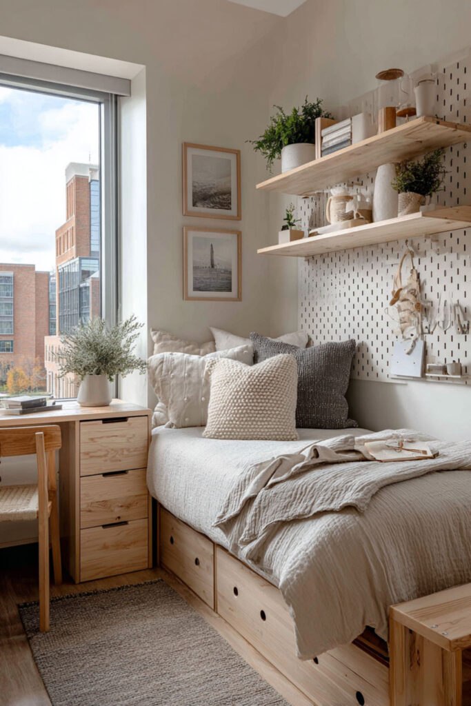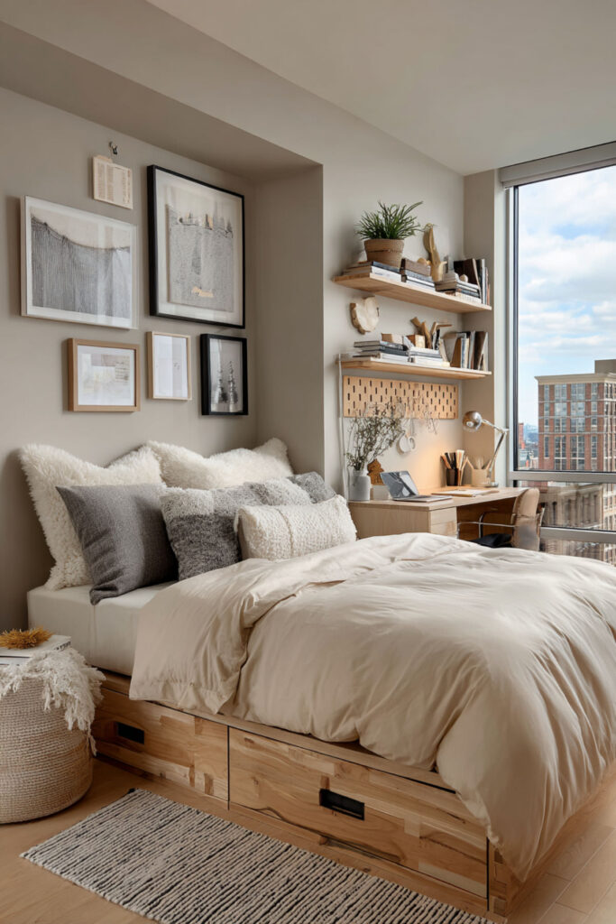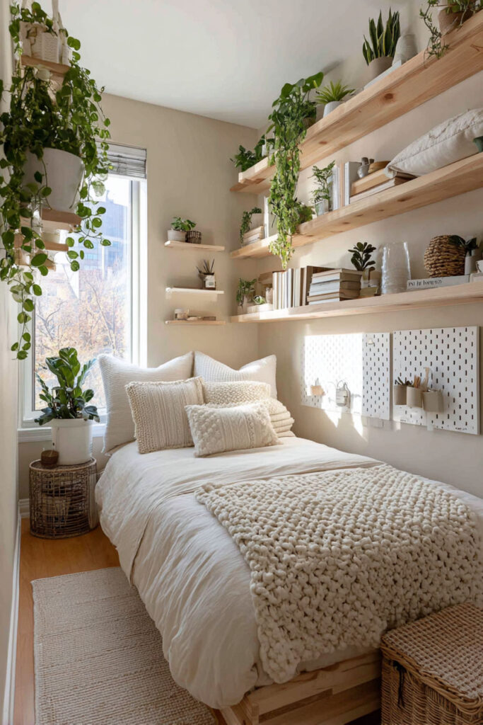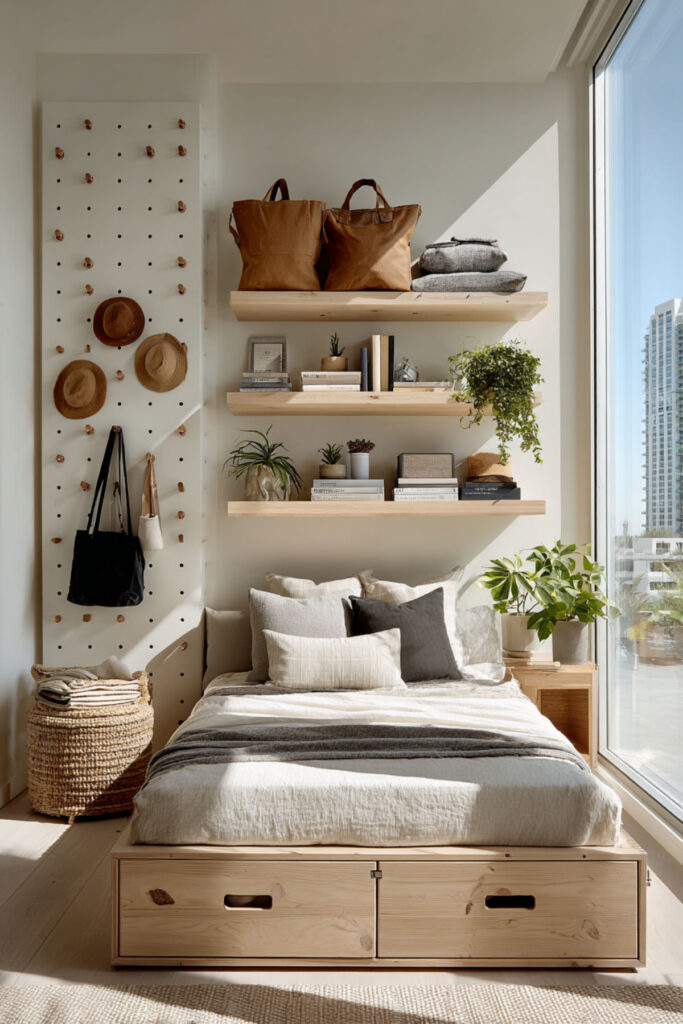 I really recommend this three-dimensional thinking for tiny spaces. The maximized storage means everything has a home, reducing daily stress. Ever since going vertical, your small bedroom functions like a much larger space.