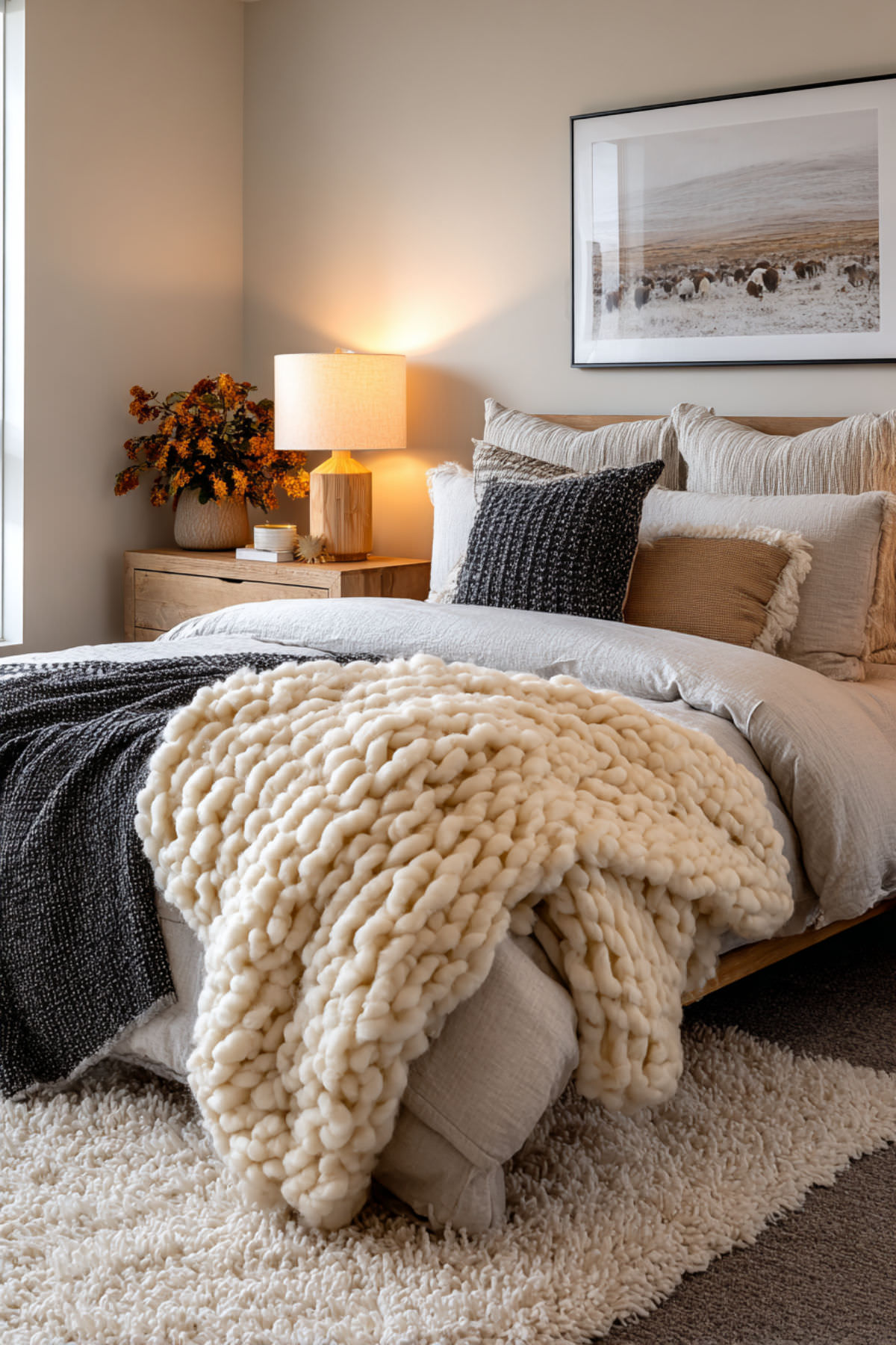 Area rugs for bedroom use are the single most impactful way to make a bedroom feel warm, finished, and intentional. I recommend choosing a rug large enough that it extends at least two feet beyond each side of the bed — this creates a soft landing when your feet hit the floor in the morning. Area rugs in bedroom setups anchor the bed as the focal point. Area rugs bedroom and bedroom area rugs approaches that frame the bed make the entire room feel cohesive. Carpets for bedroom area rugs add warmth and sound absorption that hard floors can’t provide on their own. Indoor area rugs in natural fibers or soft textures transform a cold floor into something that actually invites you to slow down.