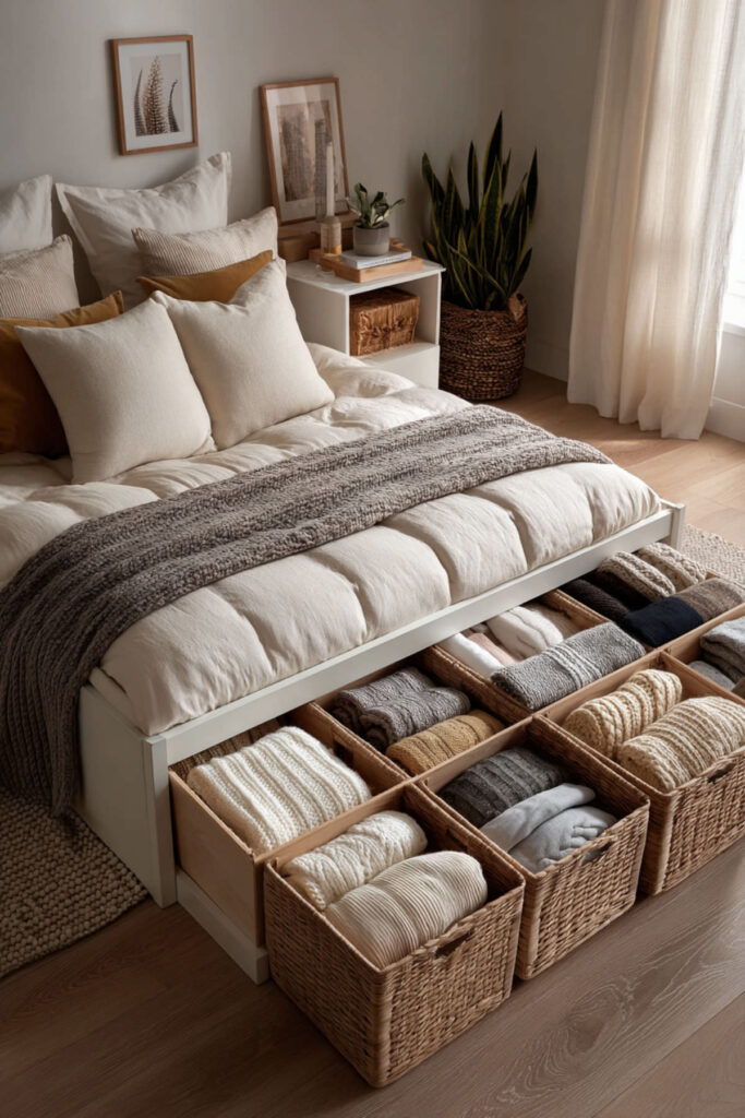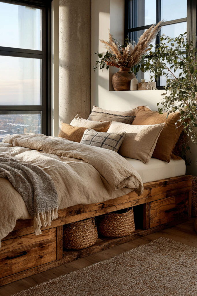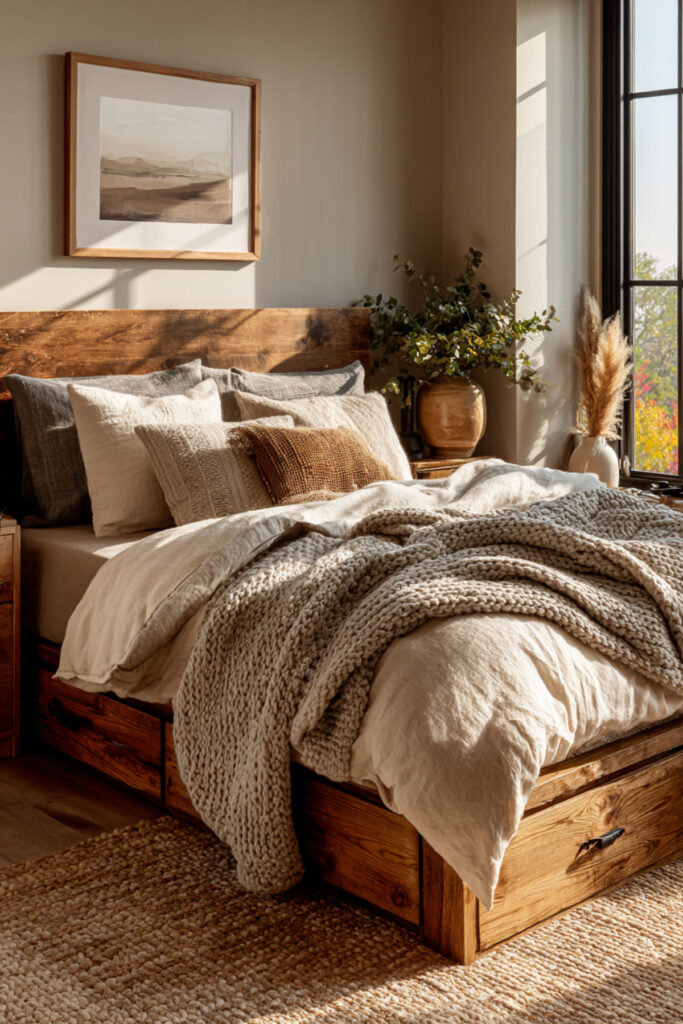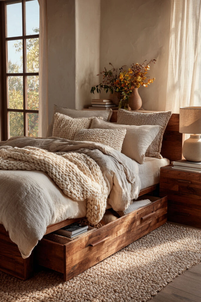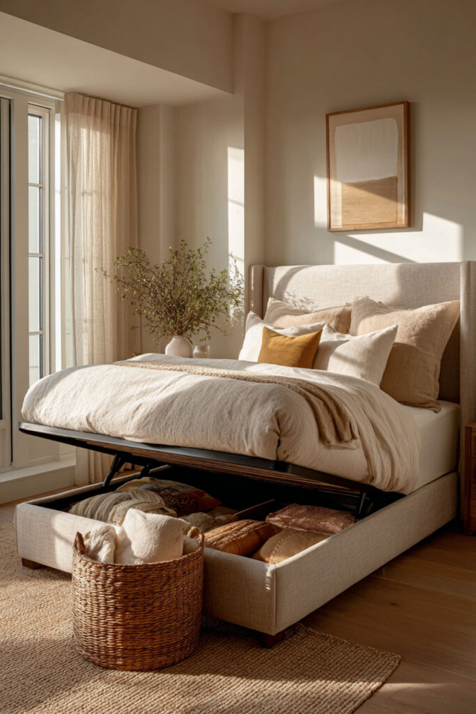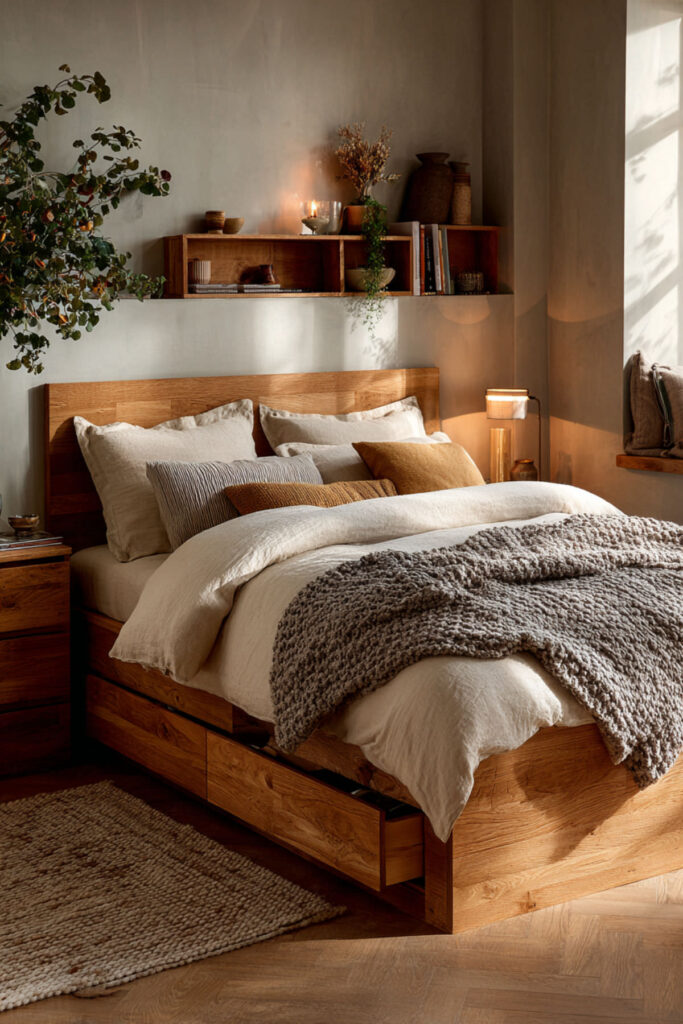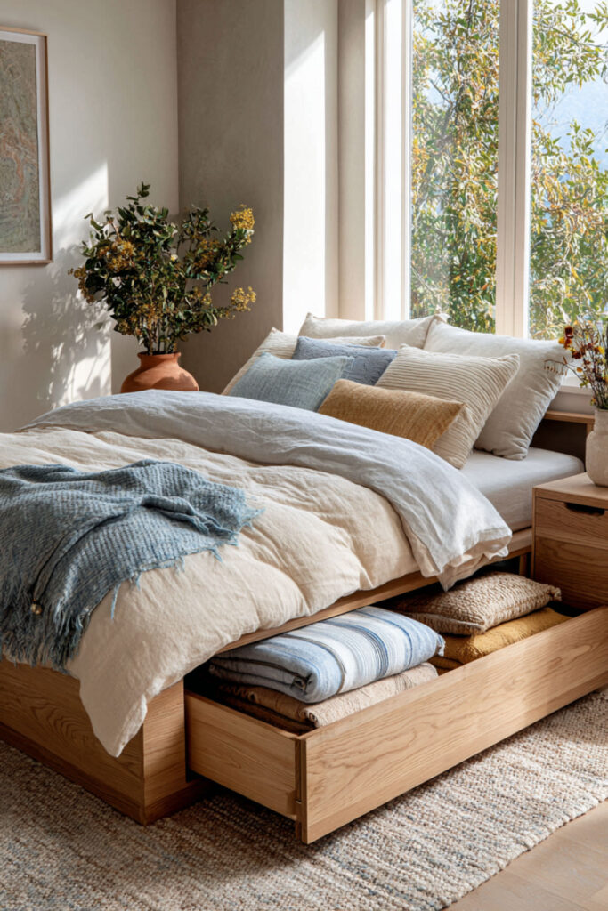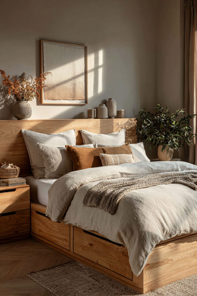11. Japandi Bed with Storage: Where Minimalism Meets Warmth