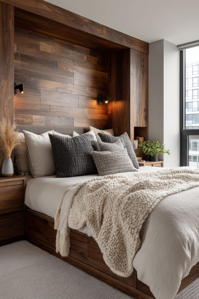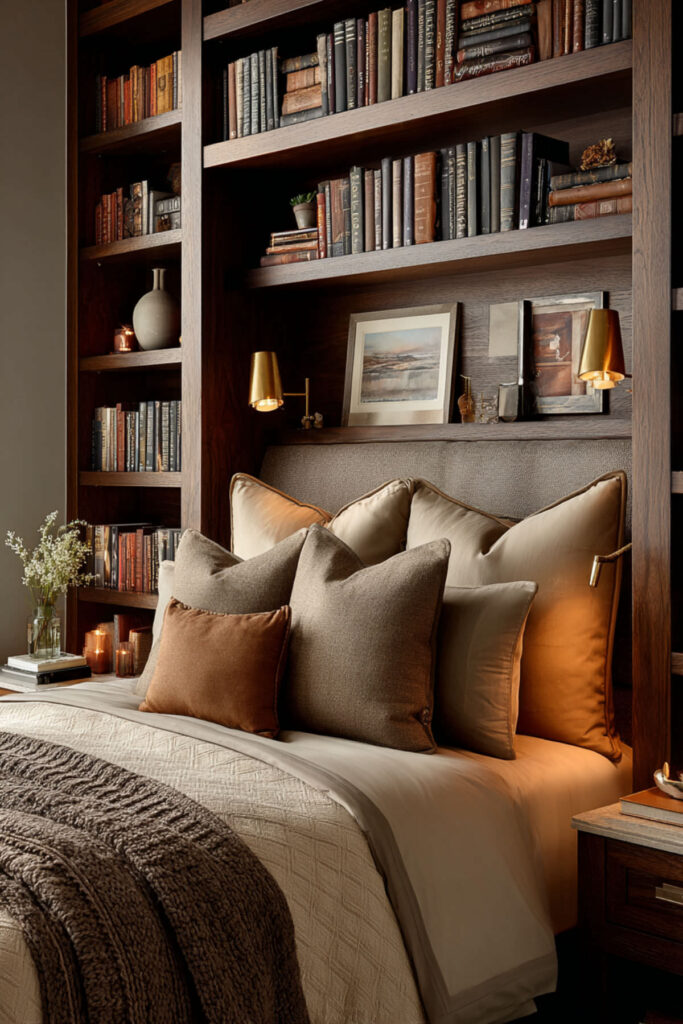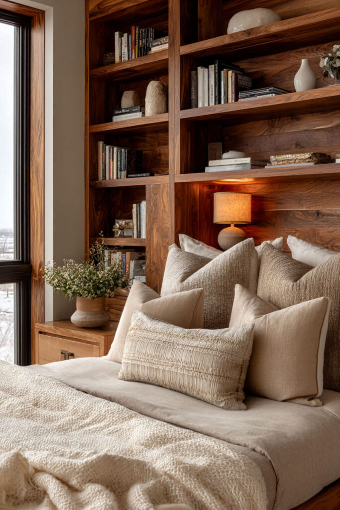 9. Headboard with Shelves: Vertical Storage That Saves Floor Space