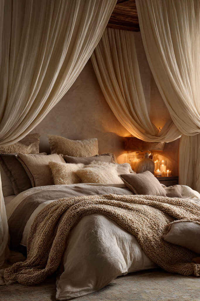 6. Canopy Bed with Linen Curtains: Relaxed, Textured Romance