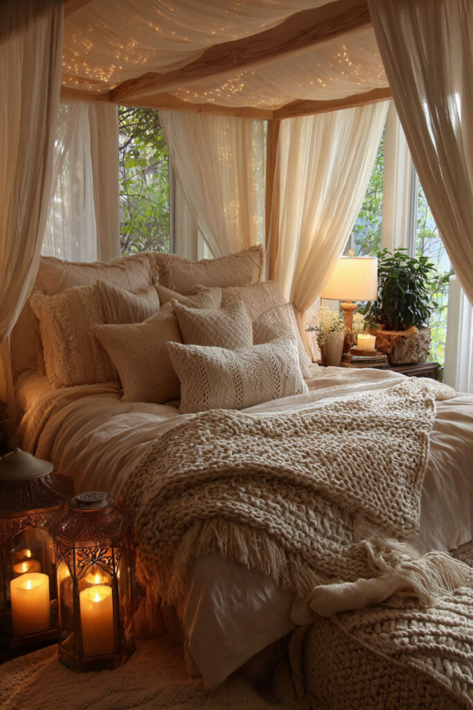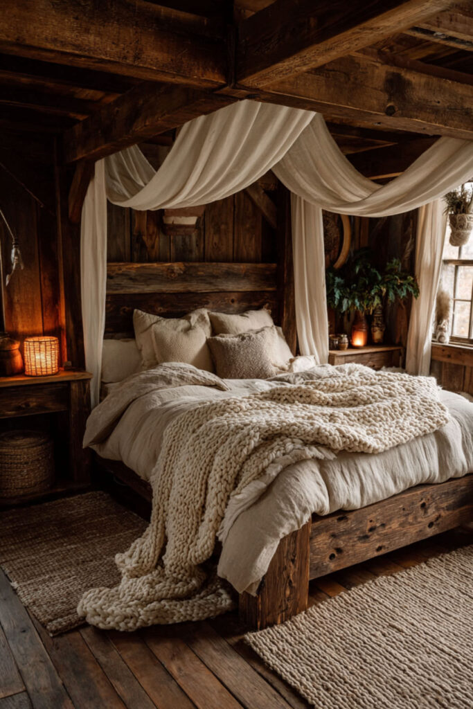 15. Farmhouse Canopy Bed: Rustic Evening Warmth