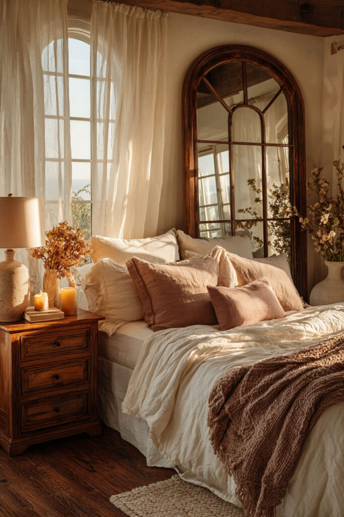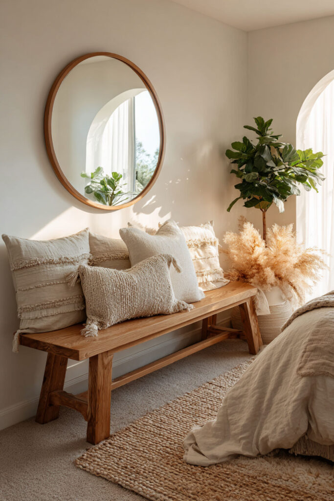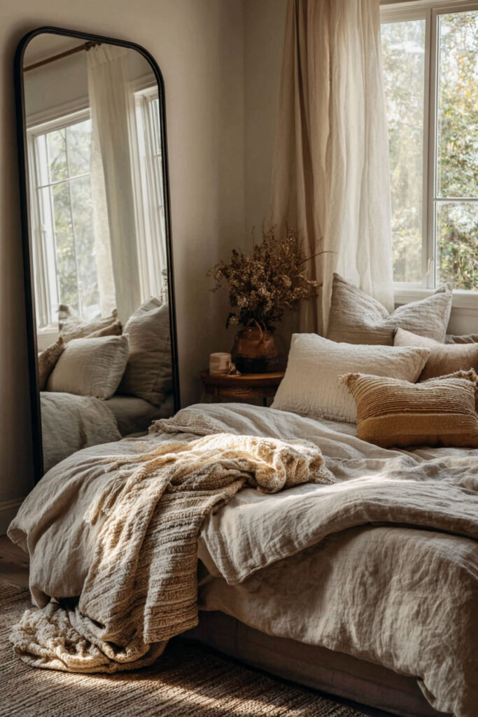Here’s a styling secret — mirrors marketed for entryways often work beautifully in bedrooms. They’re designed to make an impression, which is exactly what you want.