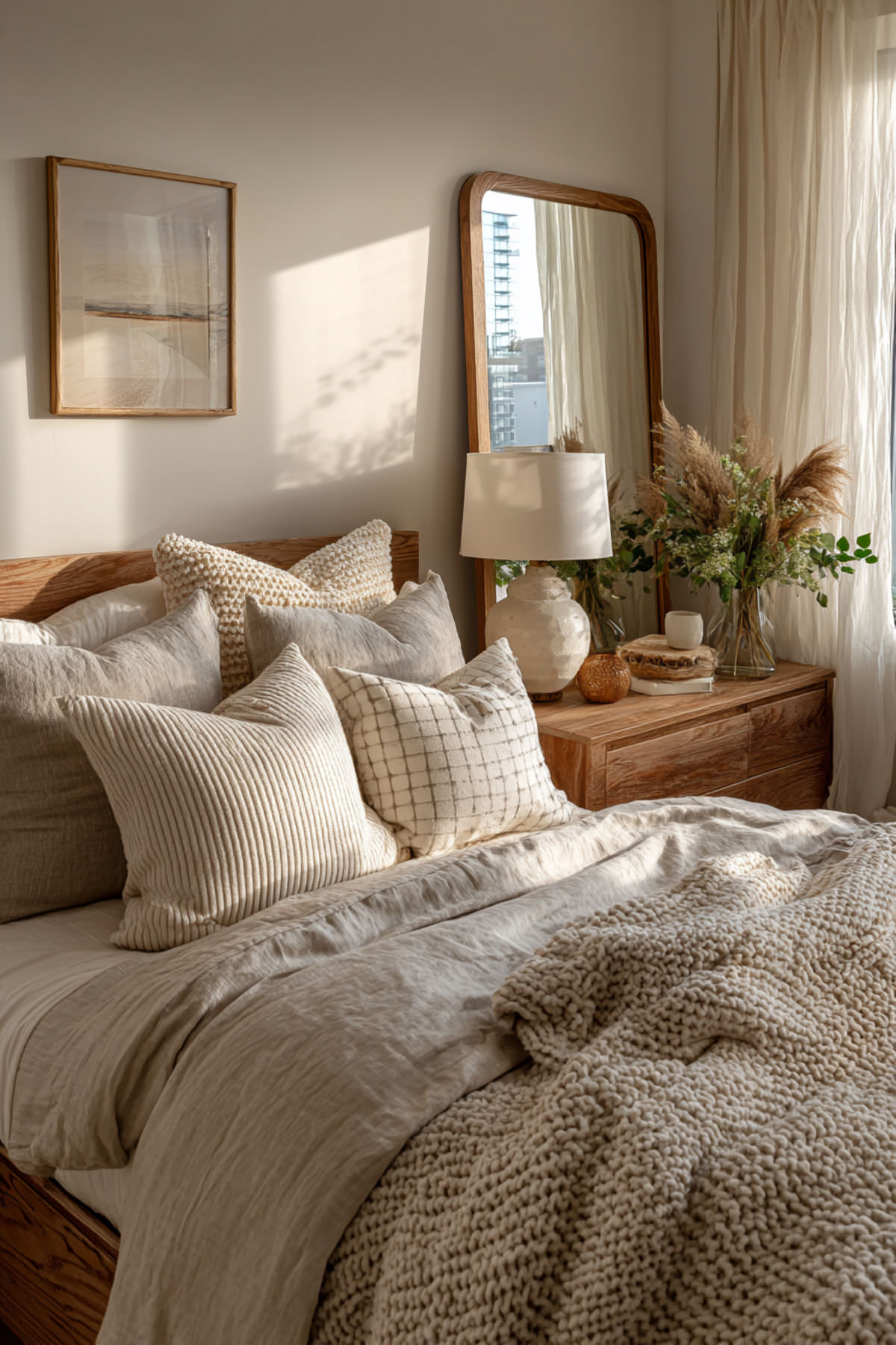 Here’s a styling secret — mirrors marketed for entryways often work beautifully in bedrooms. They’re designed to make an impression, which is exactly what you want.