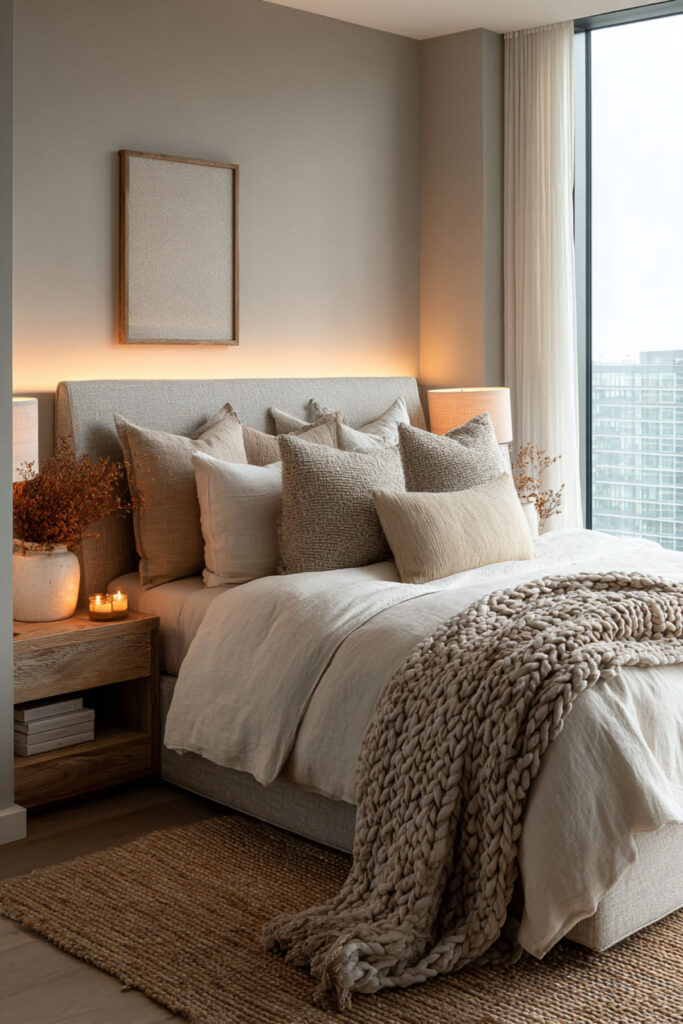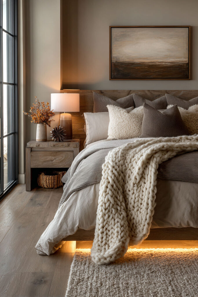 Mounting an LED strip along the bottom edge of your bed frame — facing the floor — creates a glow that makes the entire bed look like it’s hovering. The light spills across the floor and creates a soft pool of illumination that’s visible from every angle in the room. At night, with the overhead light off, the effect is genuinely cinematic. It’s one of those setups that makes people walk into your room and immediately say “wait, how did you do that?” I recommend a warm white or soft cool white LED strip mounted with adhesive along the inner edge of the bed frame, about one inch from the floor. If your bed frame sits on the floor (platform style), you can mount the strip along the outer base instead. This under bed lighting idea is the setup that looks the most expensive for the least effort — truly the best effort-to-impact ratio on this list.