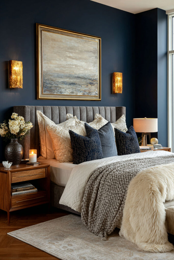 I came across this trending idea while browsing design accounts and I think it’s one of the most beautiful bedside setups right now: a pair of Art Deco sconces flanking the headboard instead of table lamps. Wall lights for the bedroom free up your nightstands (finally!), and the symmetry creates a kind of quiet grandeur that feels polished without being stuffy. Art Deco lighting fixtures bring those beautiful geometric lines and warm metallic finishes — think brushed brass, amber glass, subtle fan shapes. This reminds us of the kind of effortless elegance you’d see in a restored brownstone in Chicago’s Lincoln Park neighborhood. I really recommend a set of matching Art Deco style wall lamps with an amber glass detail — the warm glow they produce is just incredible, especially at night.