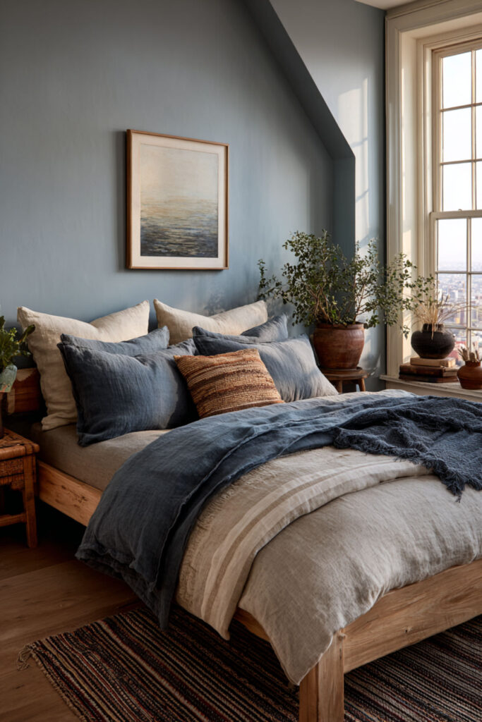 Blue and Beige Bedroom for Earthy Warmth
