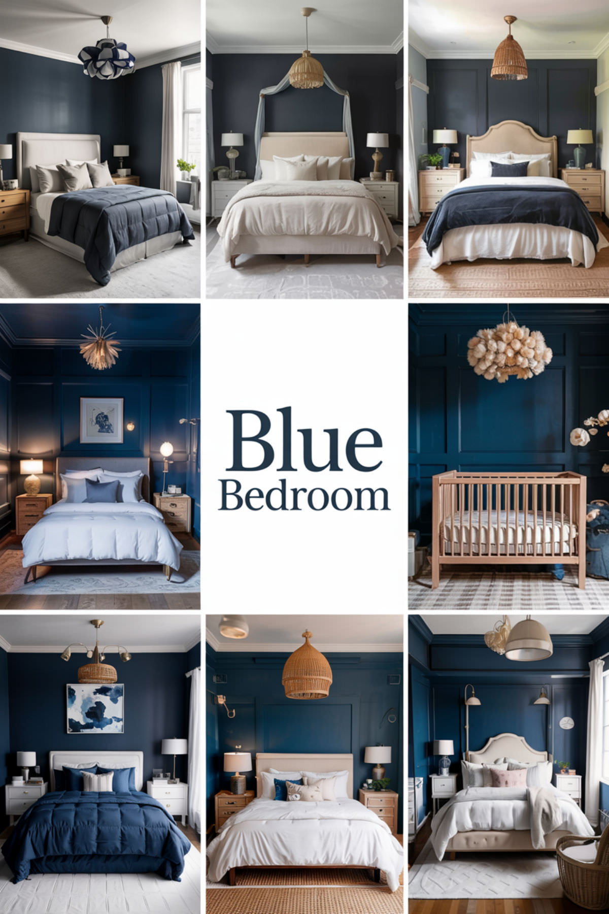 Design a tranquil blue bedroom through thoughtful lighting that enhances the midnight blue’s calming effects. Install warm-toned dimmers on every light source, add amber reading lights, and incorporate candles for evening ambiance. The warm lighting prevents the blue from appearing harsh while supporting natural melatonin production.