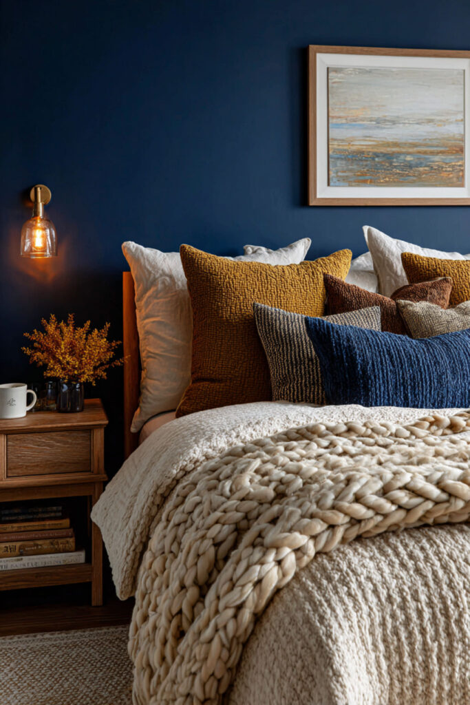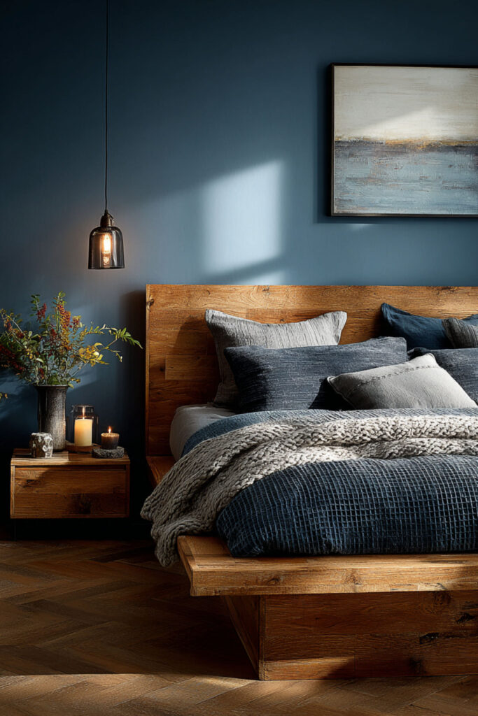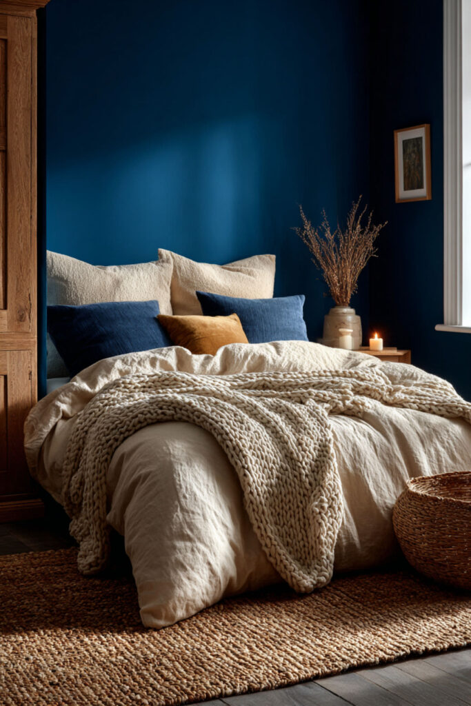 Cozy Moody Bedroom Ideas: Deep Blue and Earth Tones