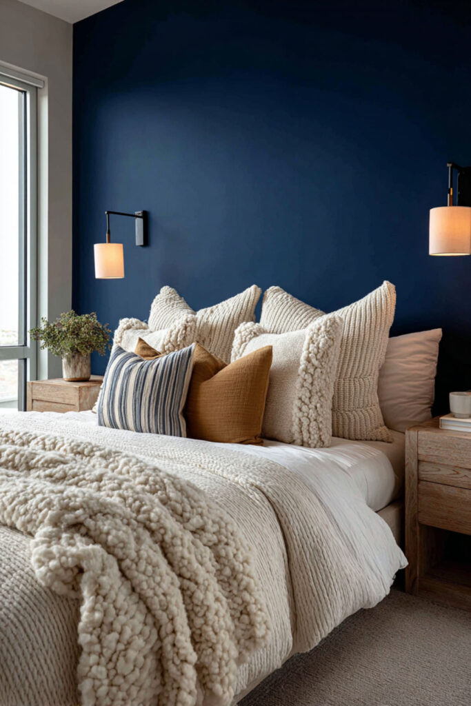 Cozy Bedroom Ideas Aesthetic: Accent Wall in Deep Blue