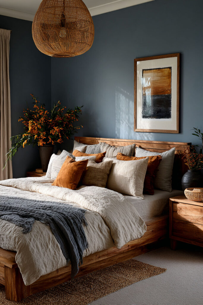 Cozy Earthy Bedroom Ideas: Blue Meets Warm Wood