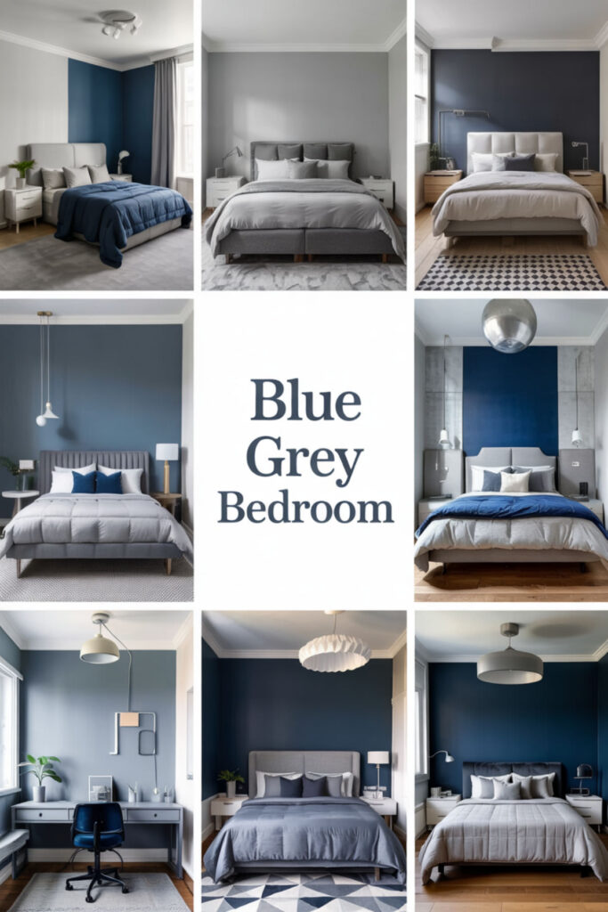 Add crisp white elements to prevent your blue-grey palette from feeling too moody. White bedding trim, curtains, or furniture brighten without disrupting the scheme.