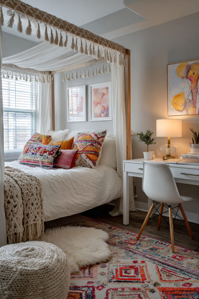 When your daughter announced she wanted to be both an artist AND a scientist, you looked around her generic pink bedroom and realized the space wasn’t supporting either dream. That weekend, you embarked on a boho transformation that would honor her free spirit while subtly encouraging achievement. Three months later, she’s conducting “experiments” at her nature-inspired desk and creating art in her macramé reading corner. The boho aesthetic didn’t just make her room prettier – it made it a launching pad for her multifaceted dreams.