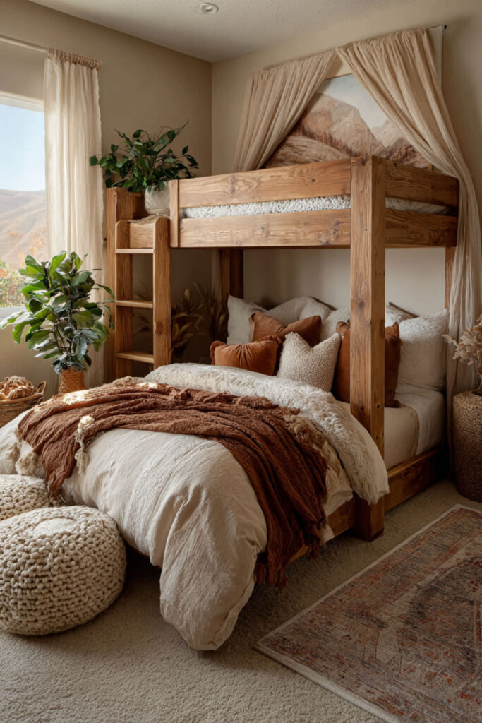 Create luxury through quality natural materials rather than excess. Think about investing in organic bedding in rich earth tones, adding a vintage Moroccan pouf for seating, and including one stunning piece of ethnic textile art. This curated luxury teaches appreciation for craftsmanship.