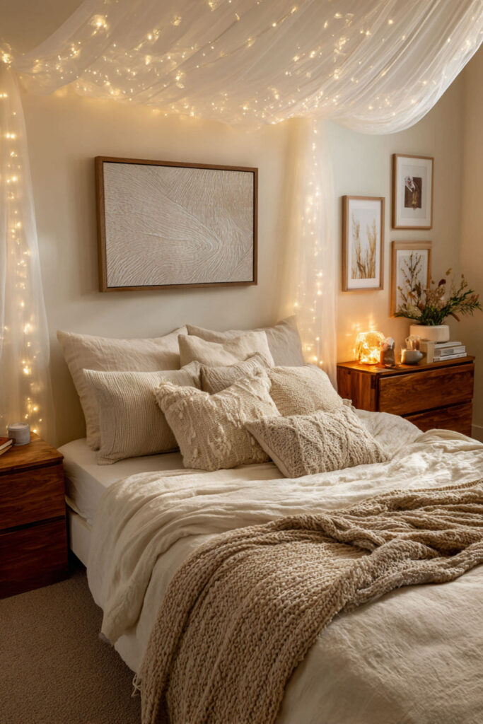 Balancing light and cozy can be tricky – too bright feels harsh, too dark feels cave-like. I recommend layered sheer curtains with blackout panels, allowing filtered light during day while ensuring proper darkness for sleep. Use light colors on walls but add warmth through wood tones and soft textiles. This creates an airy feeling without sacrificing comfort.