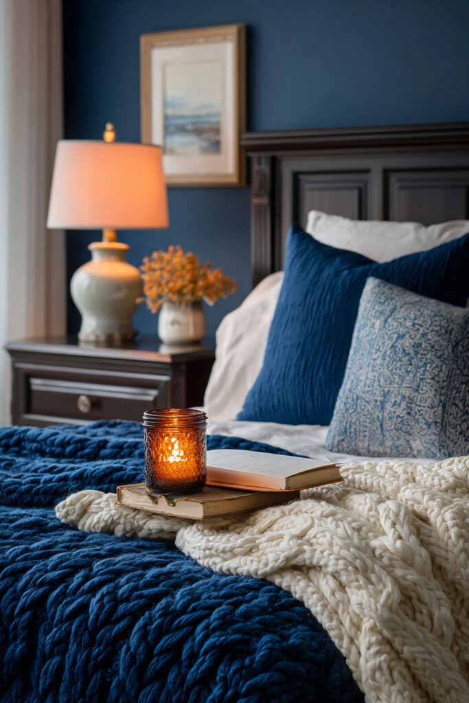 Blue bedroom ideas in the midnight range are tailor-made for women who journal before bed. Deep blue slows the heart rate, promotes melatonin production, and creates an atmosphere of quiet depth. I recommend midnight blue walls with cream bedding and warm wood nightstands. A better sleep environment starts with color, and blue consistently ranks as the most sleep-supportive bedroom color. Slow living principles applied to bedroom design always point back to blue. Adult bedroom ideas and adult woman bedroom and woman bedroom and grown woman bedroom ideas and grown women spaces in the midnight family feel both sophisticated and deeply personal.