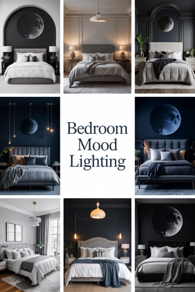 End with the perfect lighting plan: selenite lamps for ethereal glow, Edison bulbs in metal cages for industrial moon vibes, or smart bulbs programmed to dim gradually. This combination of lighting options supports your natural sleep cycle. And here’s the best part… once you experience sleeping in properly lit darkness, there’s no going back to harsh bedroom lighting. You’ll love these moon-inspired night aesthetics that bring a dreamy, celestial vibe to your bedroom.