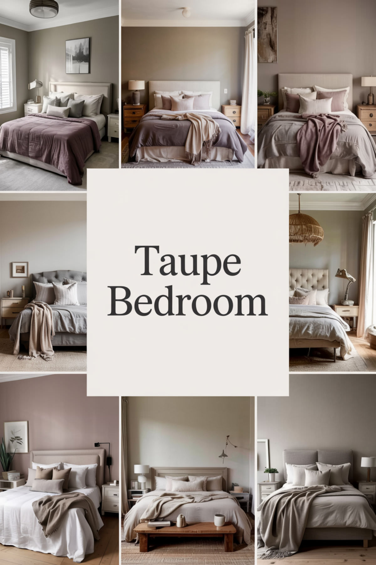 Design a taupe guest bedroom that provides universal comfort for various sleep needs. Consider a neutral taupe base with dusty plum accents that feels welcoming without being personal.