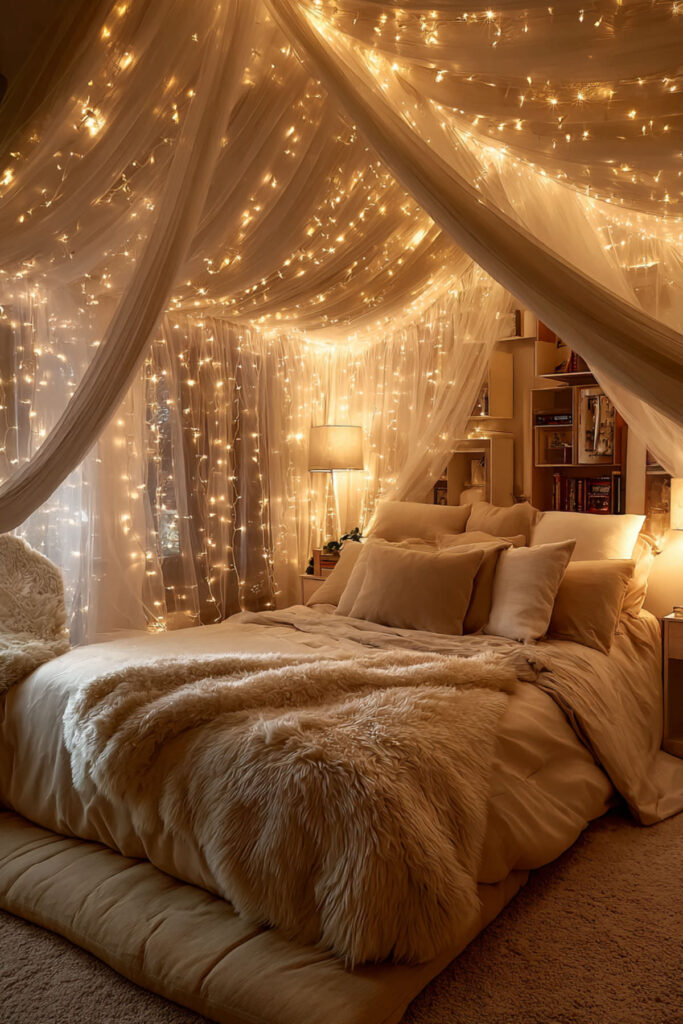 Fairy Light Canopy Over the Bed: Sleeping in Light