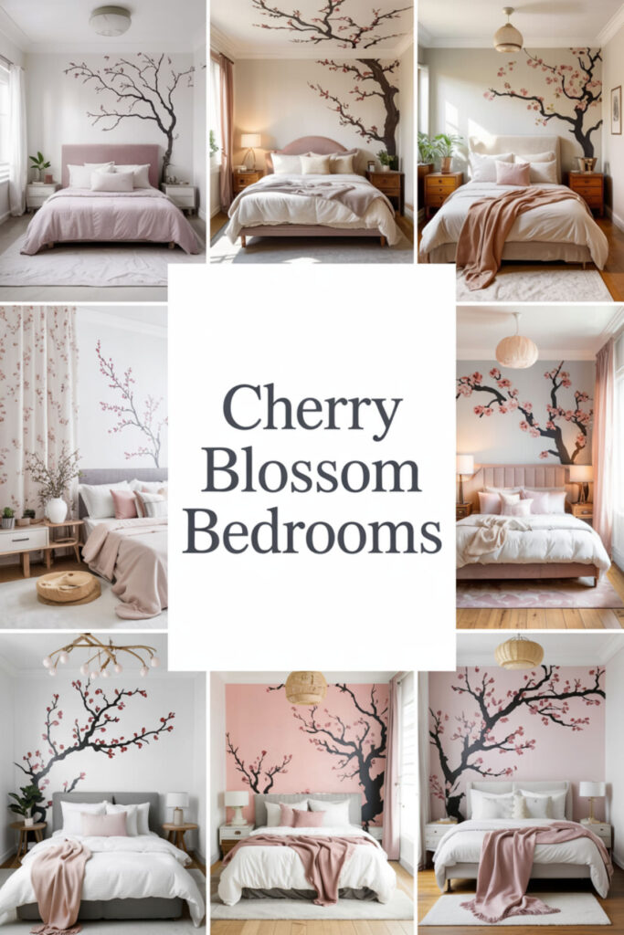 Apply Japanese modern minimalist interior principles with cherry blossom inspiration. You can keep furniture minimal but add one stunning cherry blossom branch in a simple vase, and bedding with barely-there sakura embroidery.