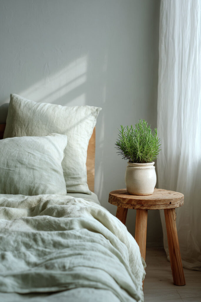 Herbal inspiration supports the healing journey of new motherhood. I recommend herb garden color schemes. Since choosing sage and herbs, your bedroom feels like a healing sanctuary.