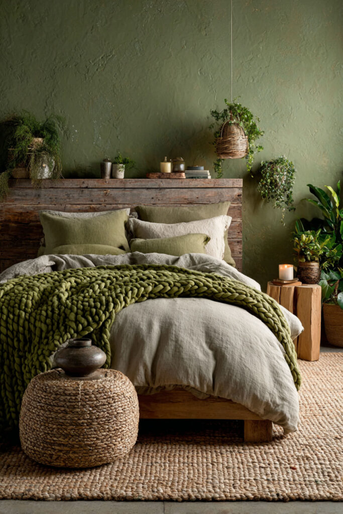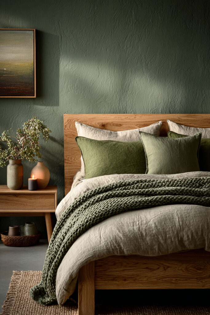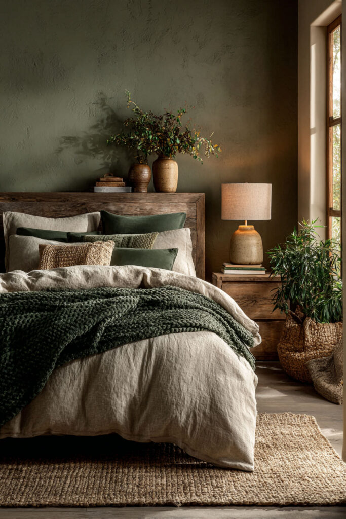 Moss Green Bedroom with Organic Textures