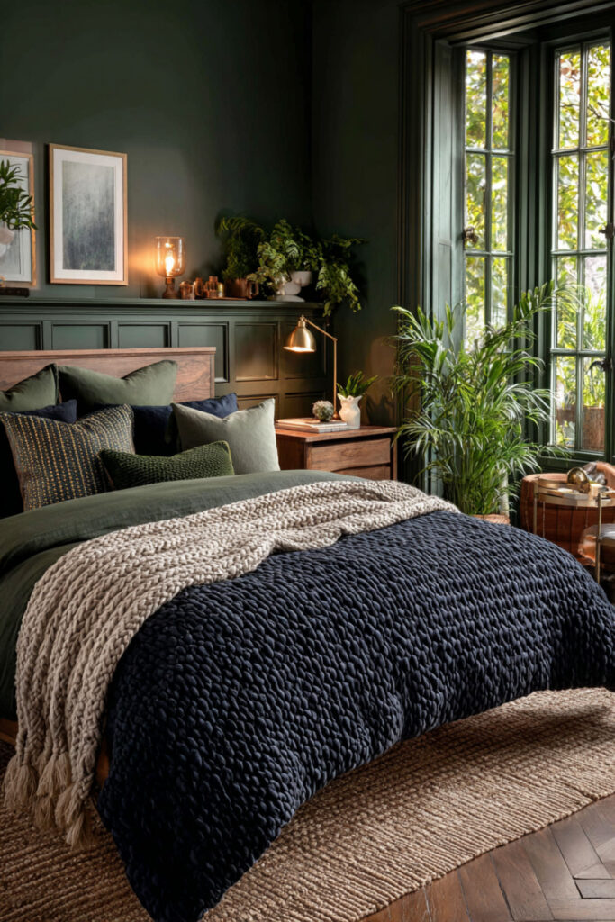 Forest Green and Navy Bedroom for a Jewel-Toned Retreat
