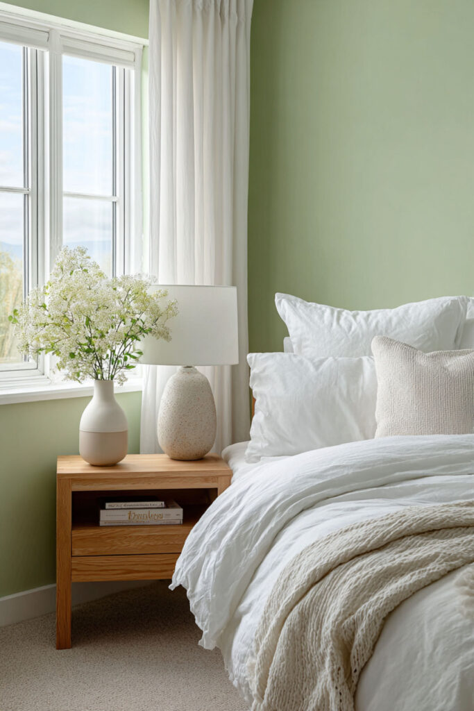 Green and Cream Bedroom Soft Contrast