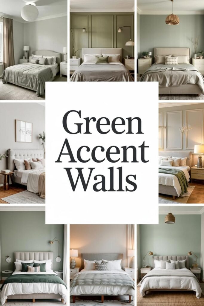 Design green accent walls for strategic cooling zones in your bedroom. Paint the wall behind your bed in cooling sage, keeping others in pale neutral. This creates a visual cooling zone exactly where you need it most. The focused green provides relief without overwhelming the space.