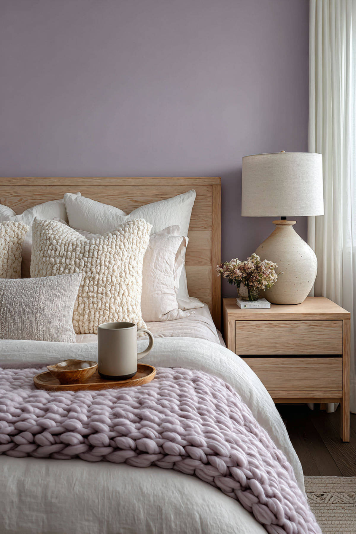 That’s exactly what lavender and pale oak do together. Lavender has this quiet, clarifying energy — it’s soft without being childish, calming without being boring. Pale oak adds warmth, structure, and this beautiful sense of natural order. Together, they make a bedroom that feels like a deep breath. The kind of room where journaling before breakfast actually sounds appealing instead of aspirational.
