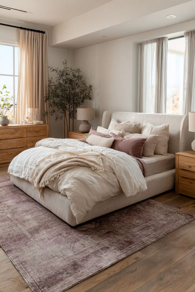 Mauve Rug: The Anchor for a Neutral Bedroom With Color