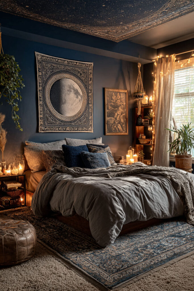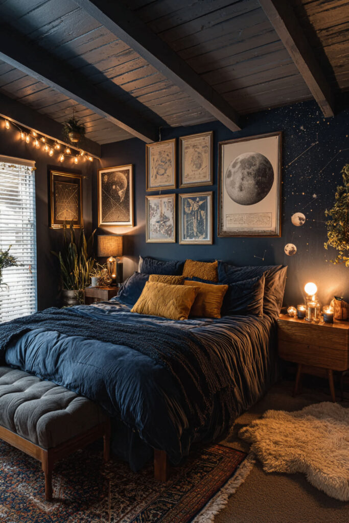 I highly recommend incorporating constellation patterns subtly – perhaps through nail-head details on furniture or abstract star-pattern textiles. Add moon phase artwork or a large circular mirror to represent the full moon. This creates visual interest for wandering eyes without overstimulation.