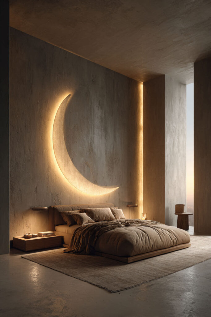 Moon-themed doesn’t mean cluttered with celestial trinkets. Choose one stunning moon-inspired element – perhaps a large photographic print of the moon, a sculptural light fixture, or bedding with subtle moon phase embroidery.