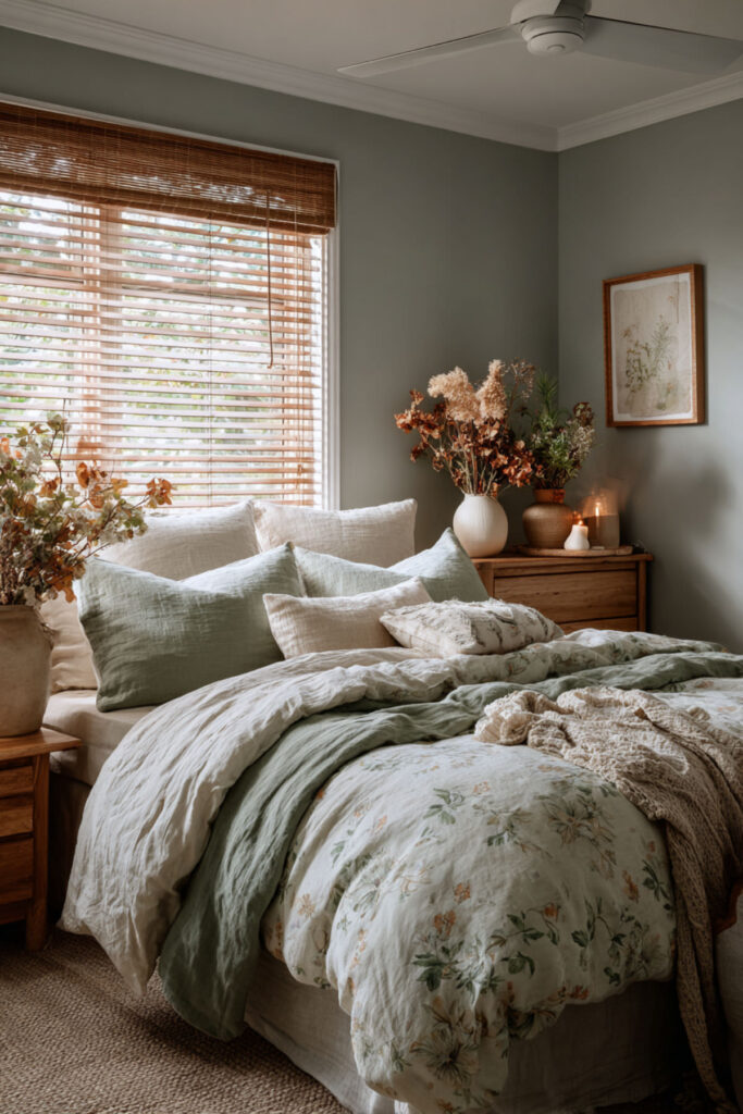 Sage Green Cozy Bedroom with Whisper-Soft Florals