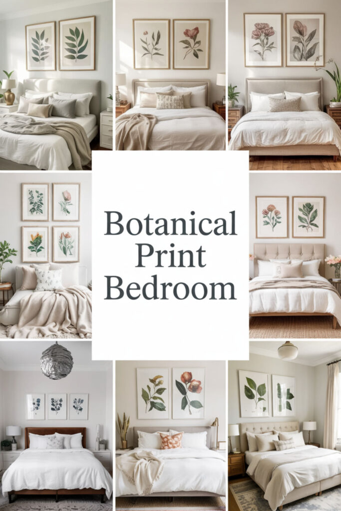 Simple Calm Bedroom Ideas with Botanical Prints