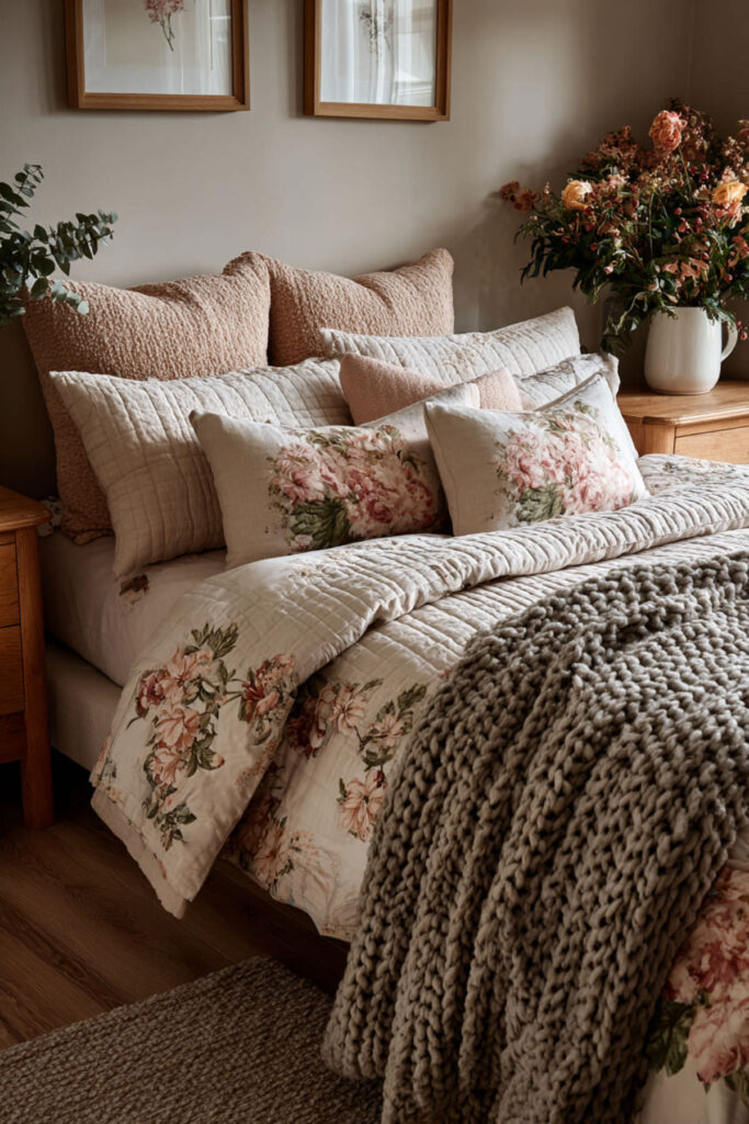 Comfortable Bedroom Ideas with Layered Floral Textures