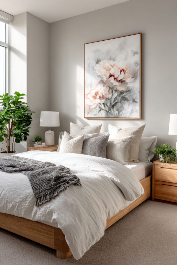 Minimalist Bedroom Ideas with Single Floral Focus