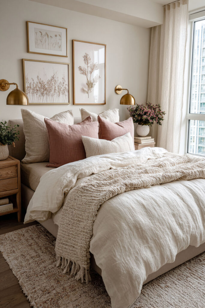 Paint is your budget friend too – a soft, muted color on one wall behind your bed creates instant calm. Add some DIY art using pressed flowers from your garden in simple frames. Would you ever try making your own floral art? It’s surprisingly therapeutic and way cheaper than gallery pieces.