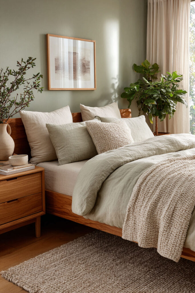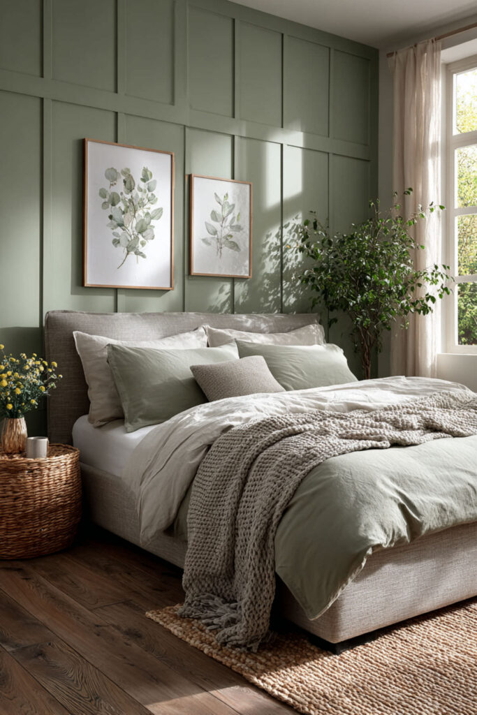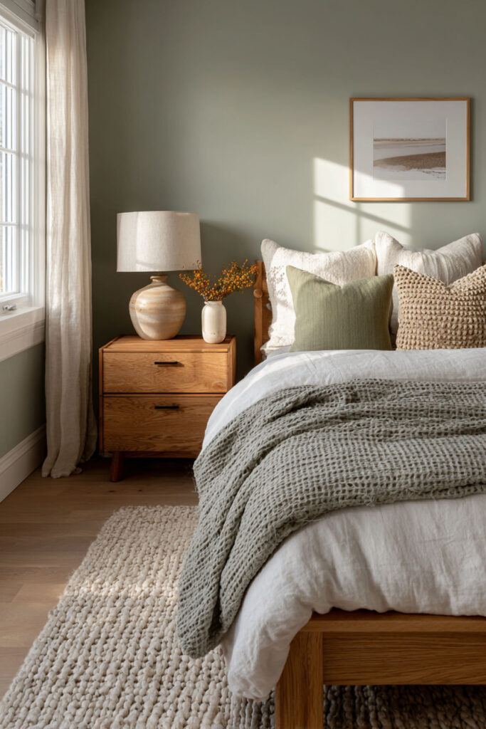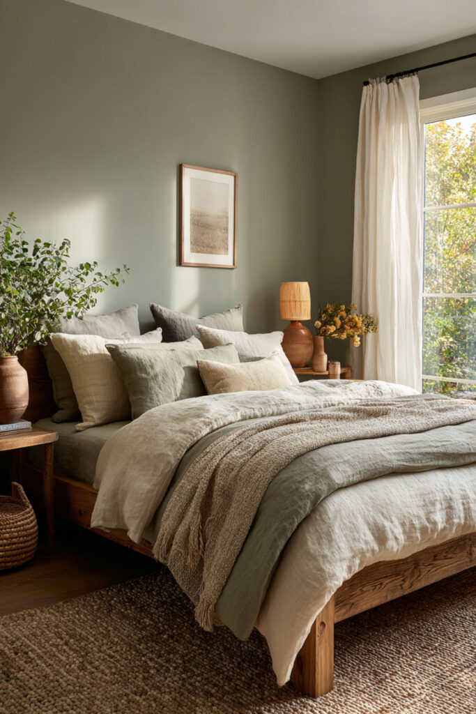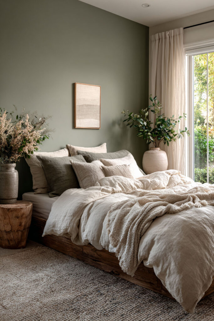 Neutral Bedroom Colors with Muted Green as the Anchor