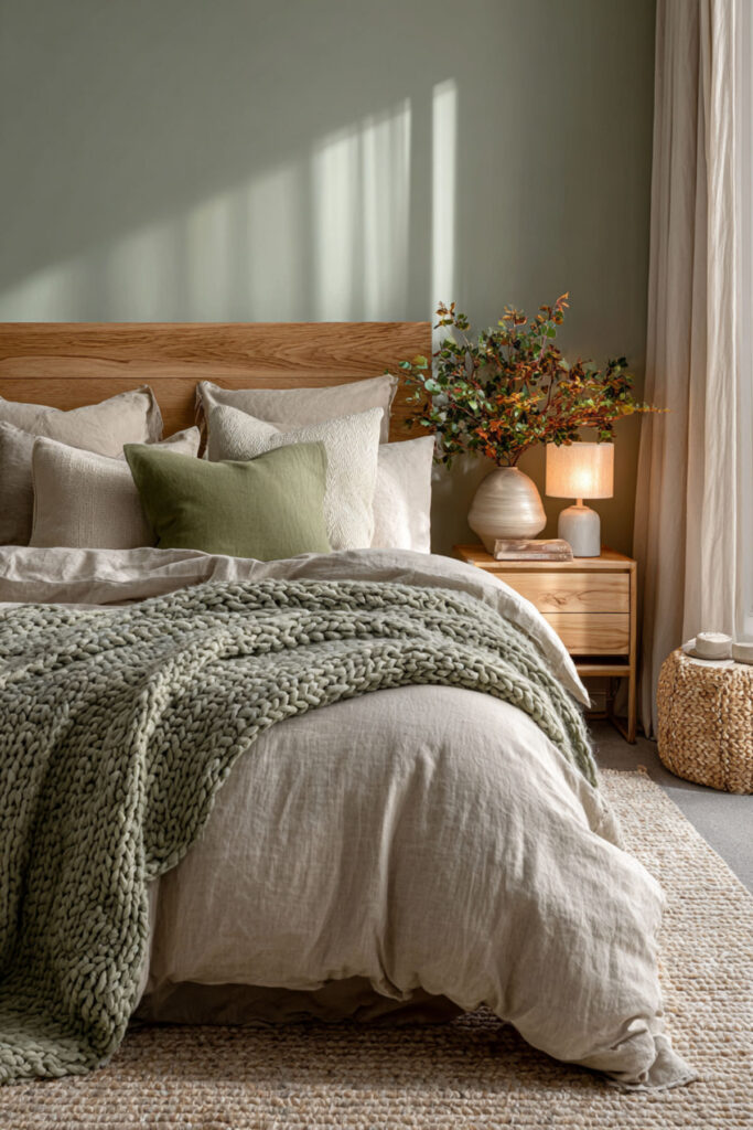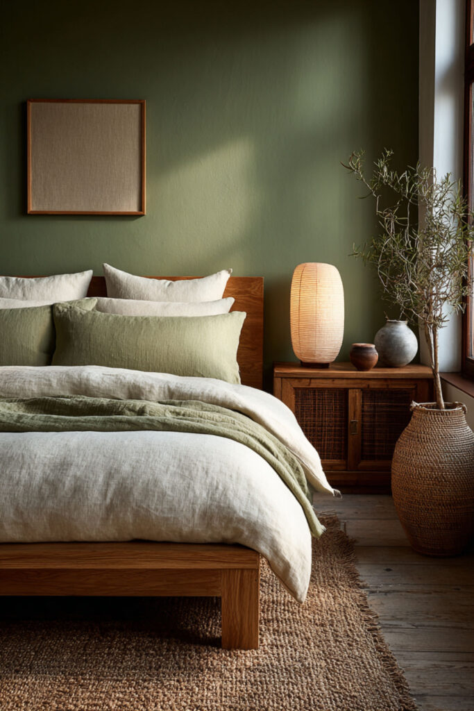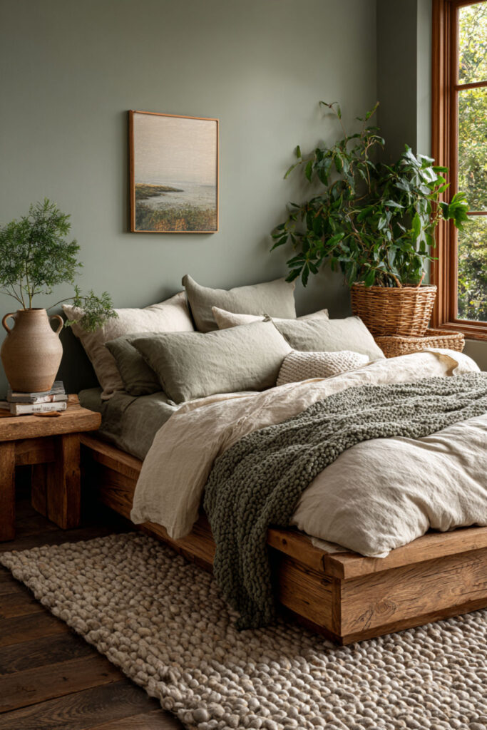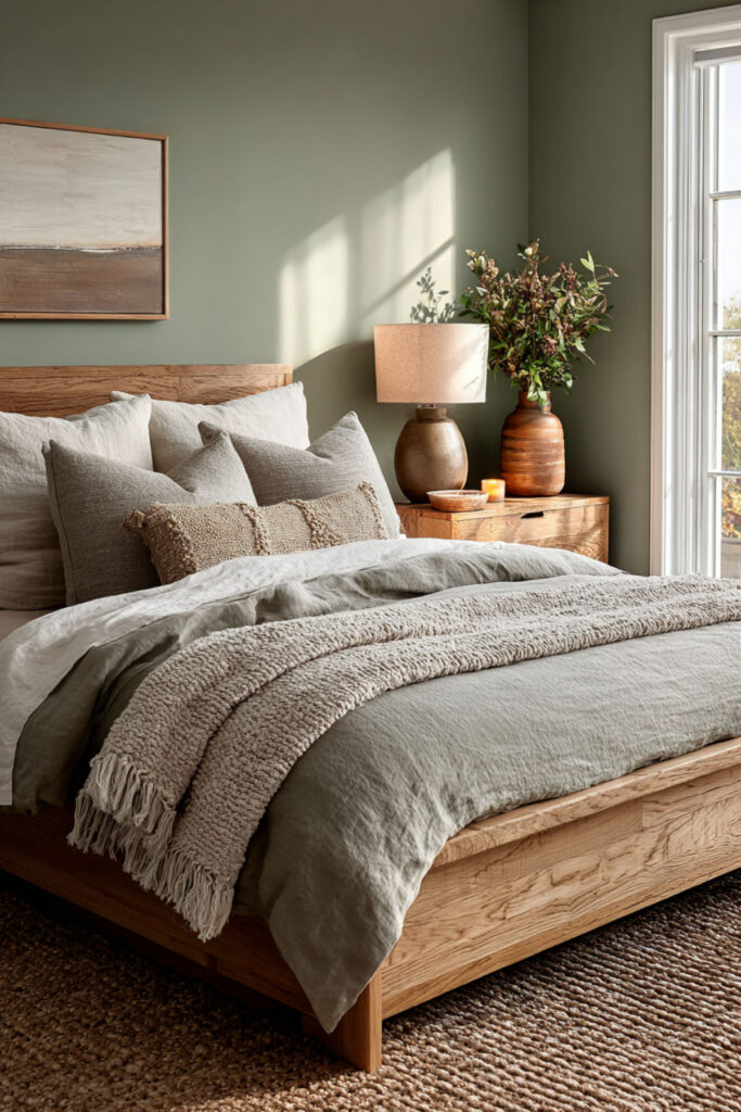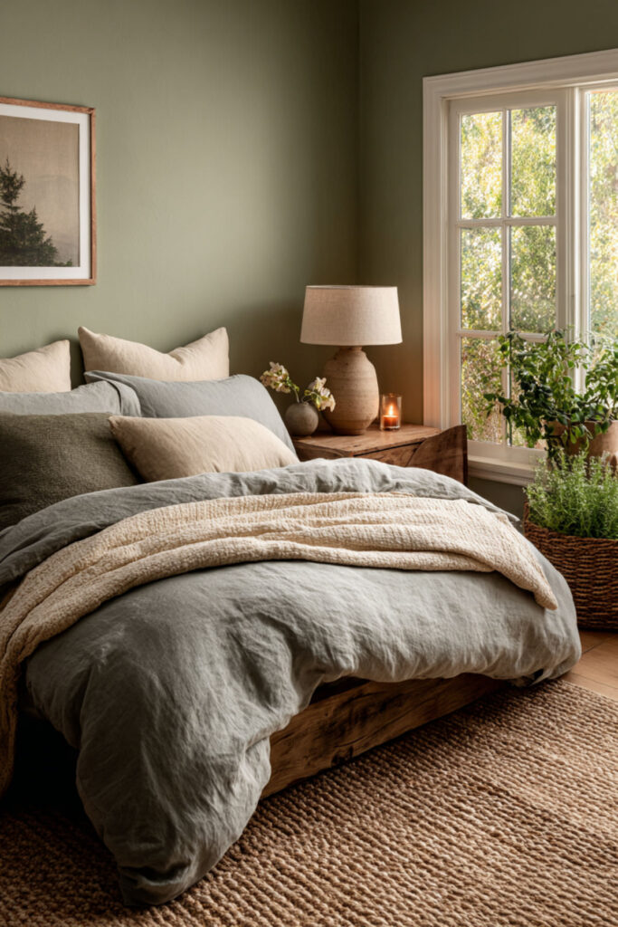 Neutral Bedroom Colors with Muted Green as the Anchor