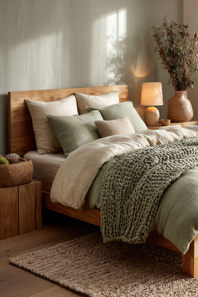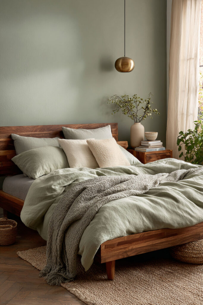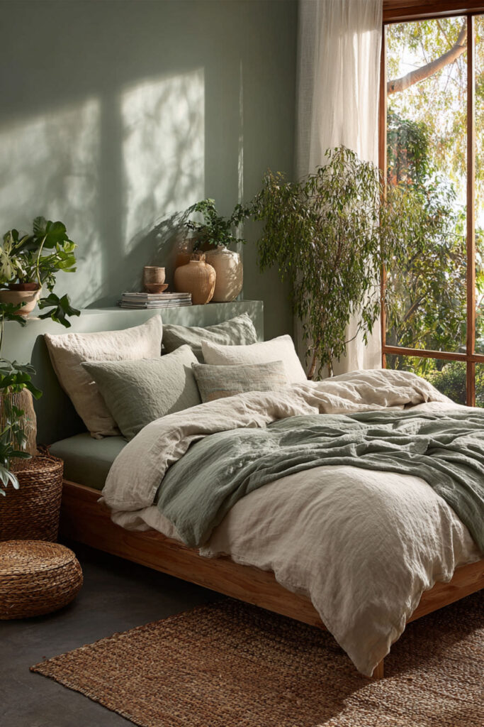 Cooling Eucalyptus-Toned Bedroom with Breathable Layers