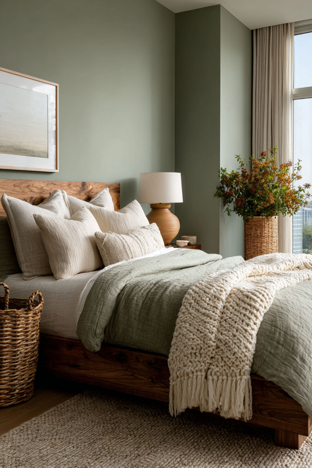 Neutral Bedroom Colors with Muted Green as the Anchor