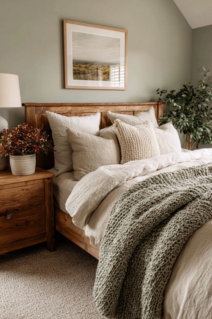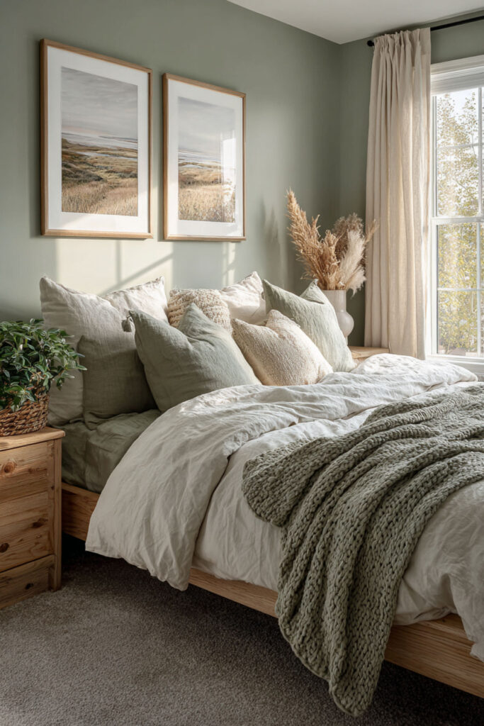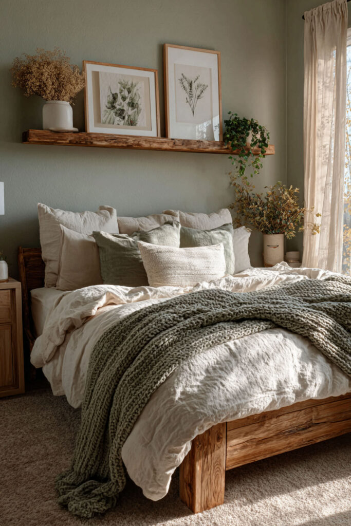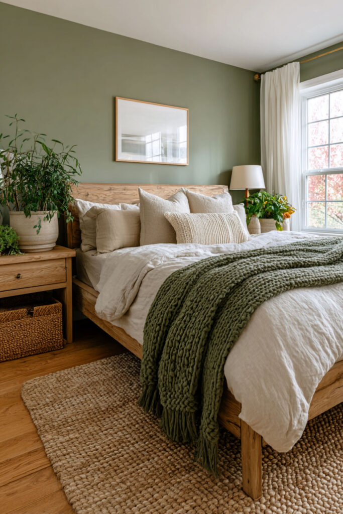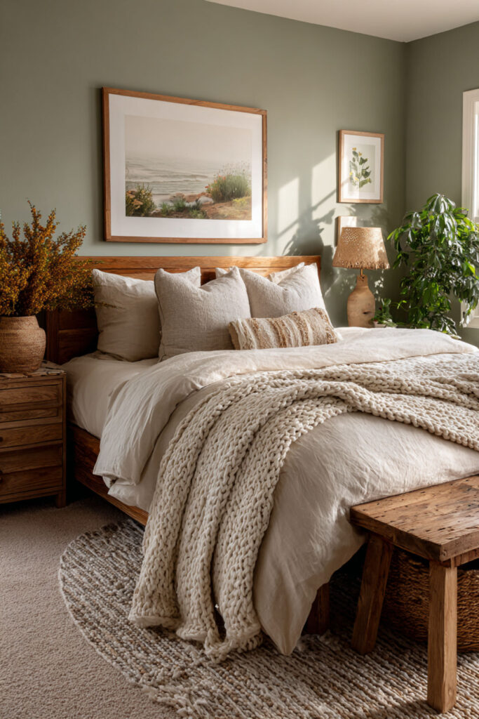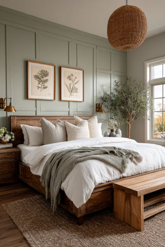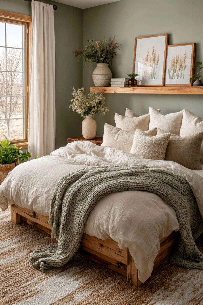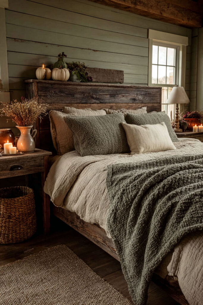 Cozy Rustic and Farmhouse Green Bedroom: Countryside Warmth