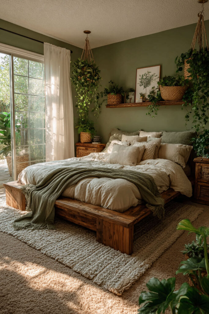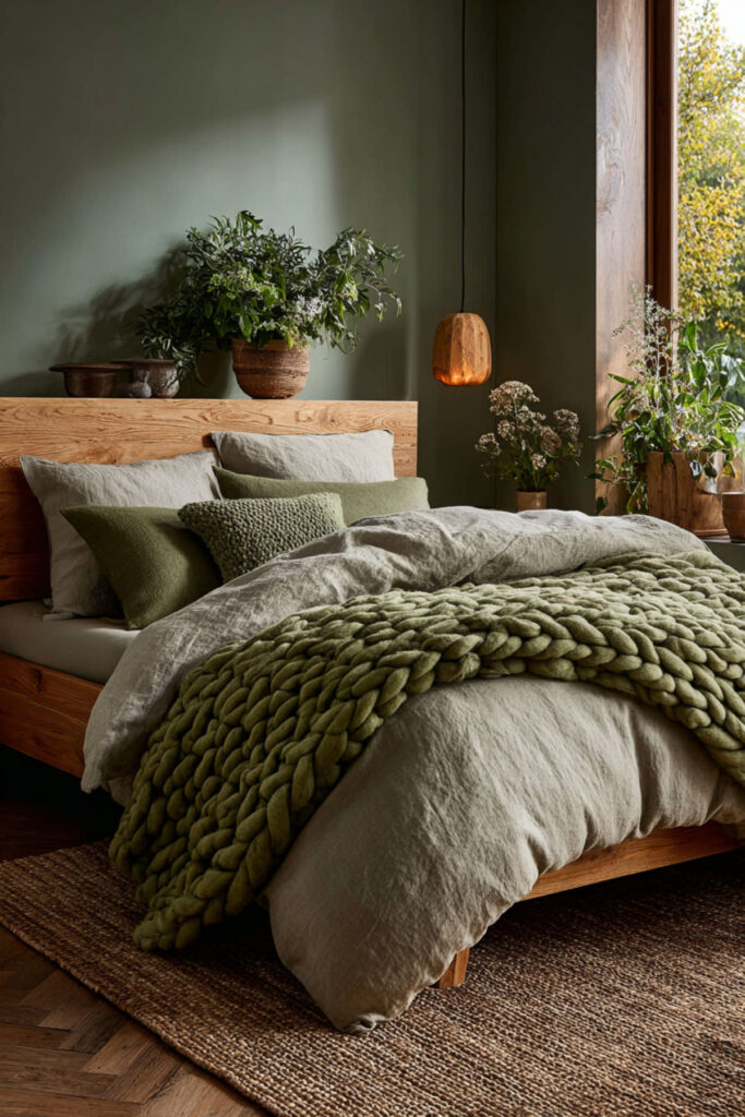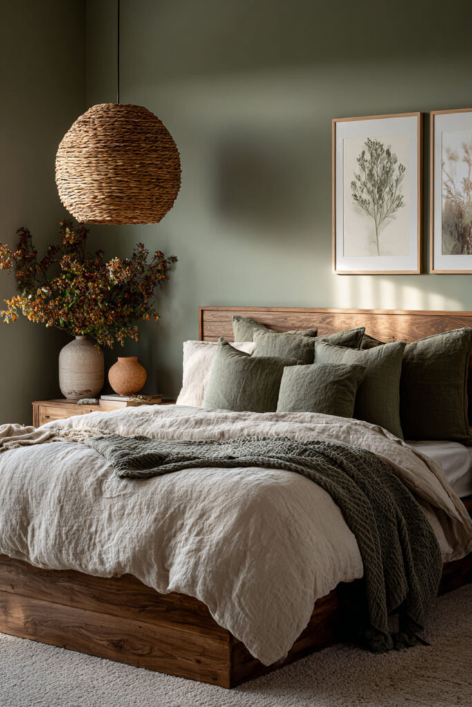 Earthy and Organic Modern Bedroom: Green With Warmth