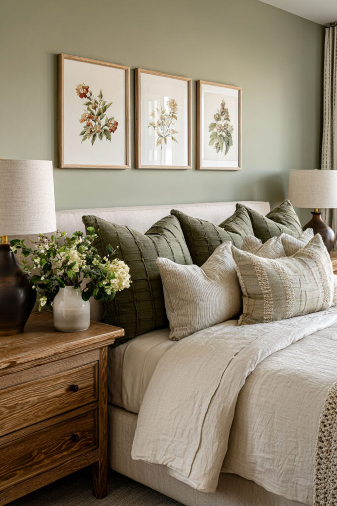 We’ve put together 18 natural green bedroom ideas for homeschooling moms seeking calm spaces. There are product and styling recommendations throughout — keep an eye out. Save the ones that speak to you, and check out the rest of the site for more. These are decorative inspirations, not scientific advice, and certain descriptions may be fictional.