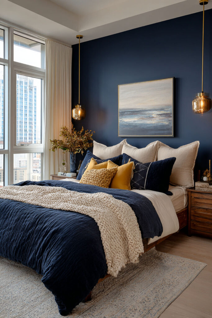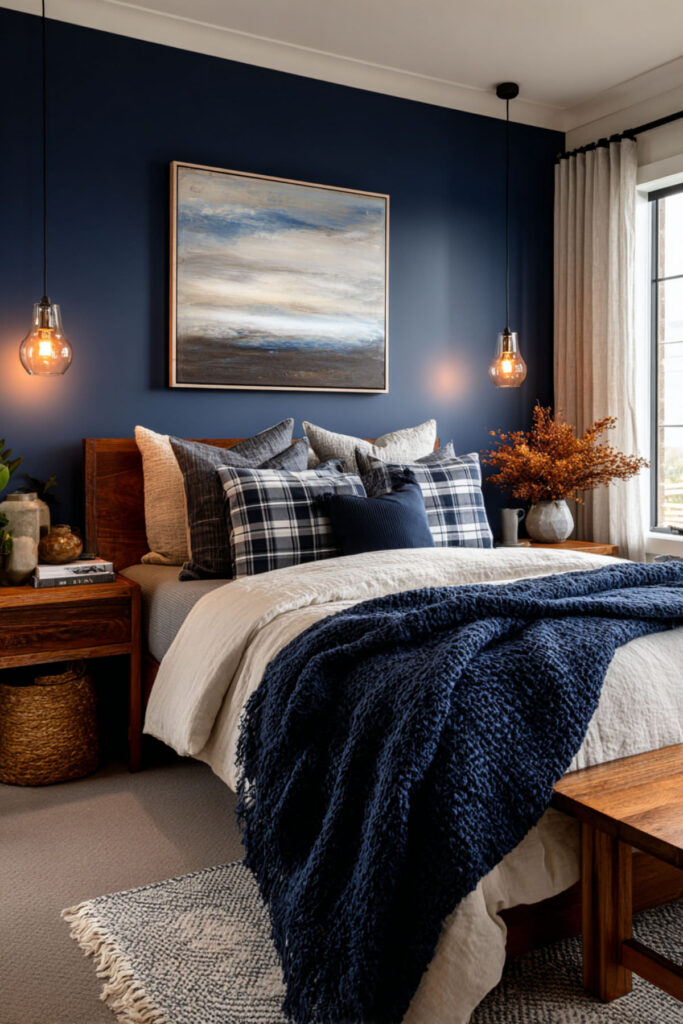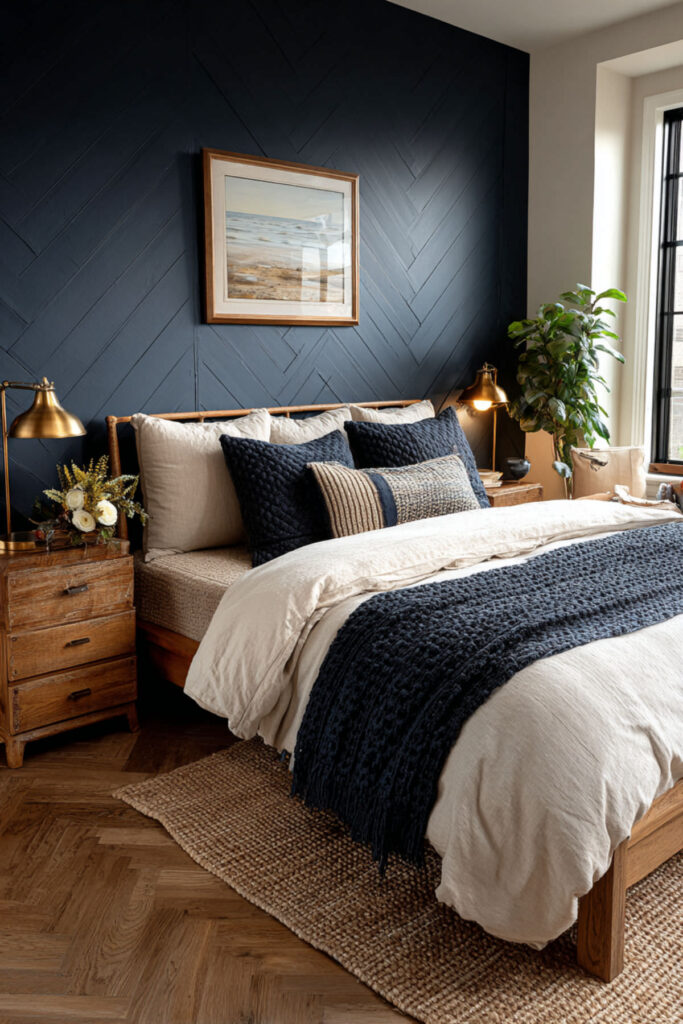 Navy Blue Accent Wall Behind the Bed: The Anchor for Everything