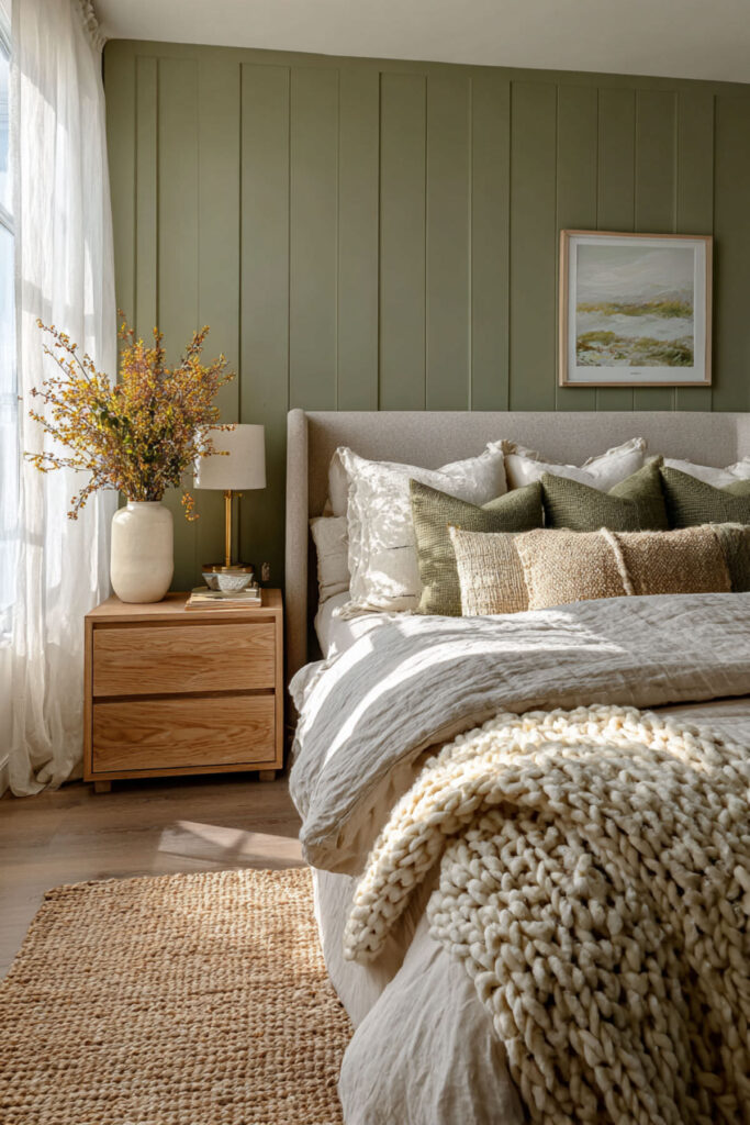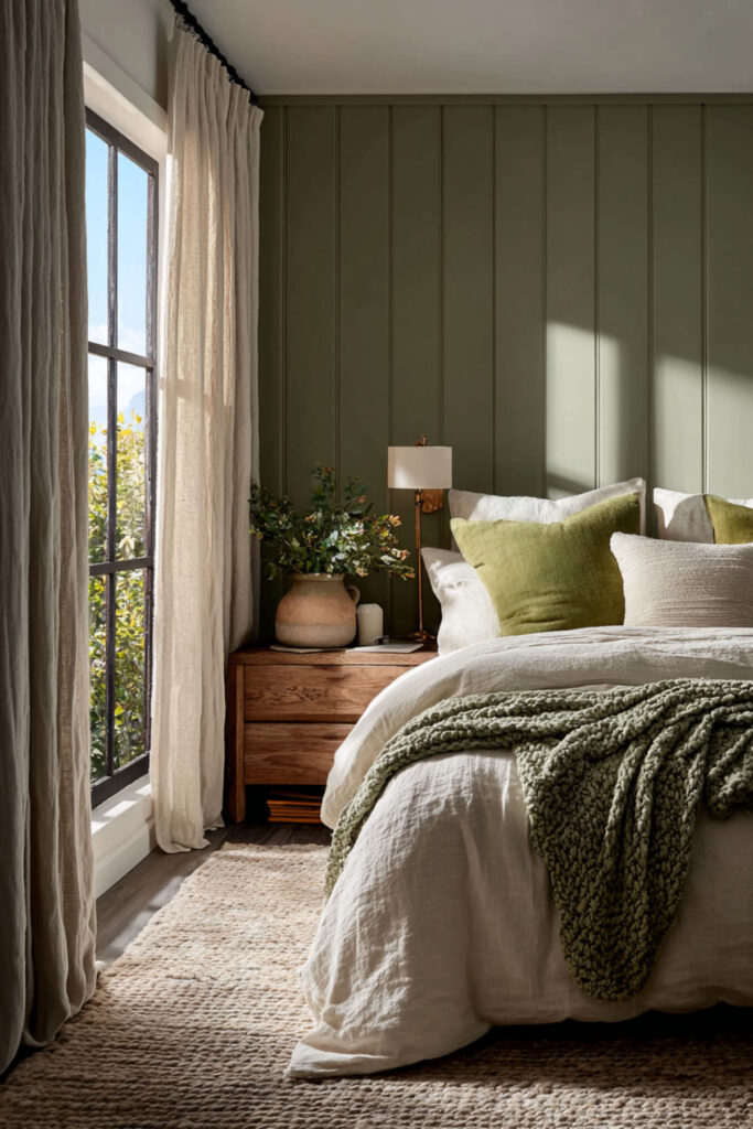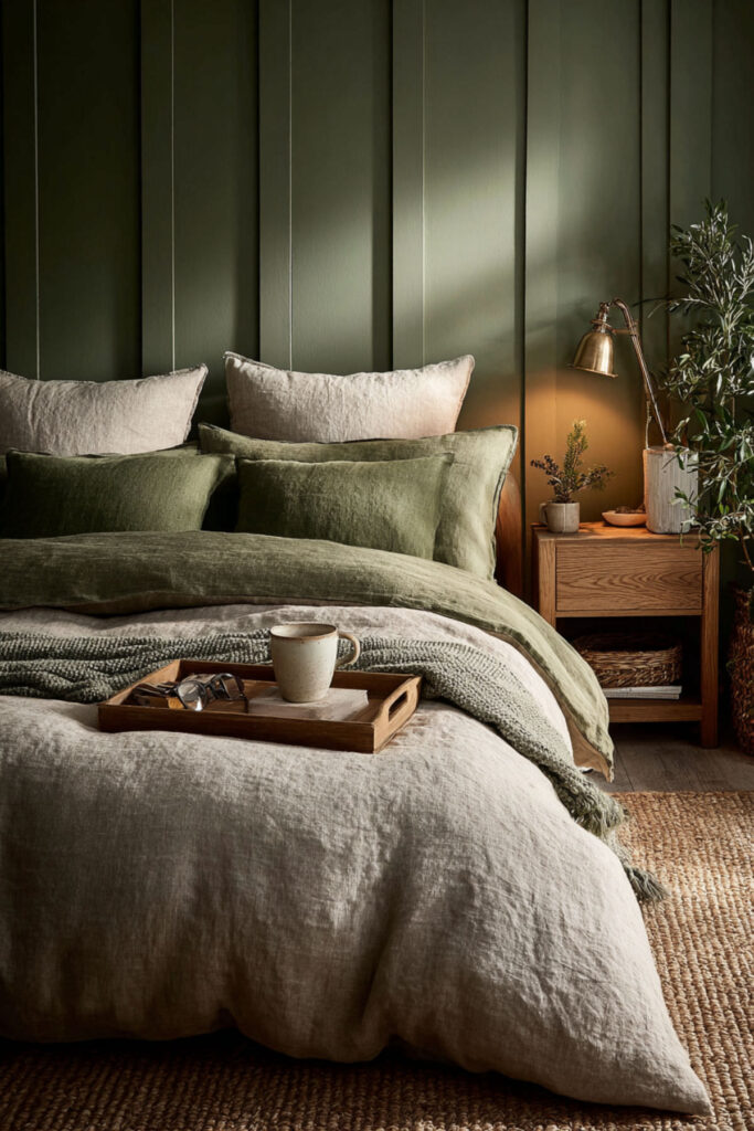 An Olive Green Accent Wall That Feels Like a Garden at Dusk